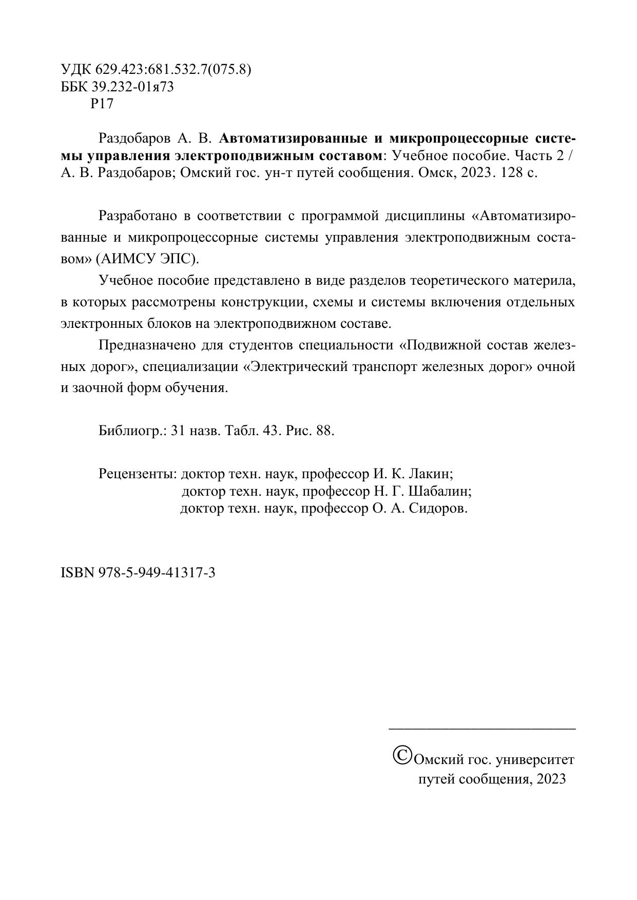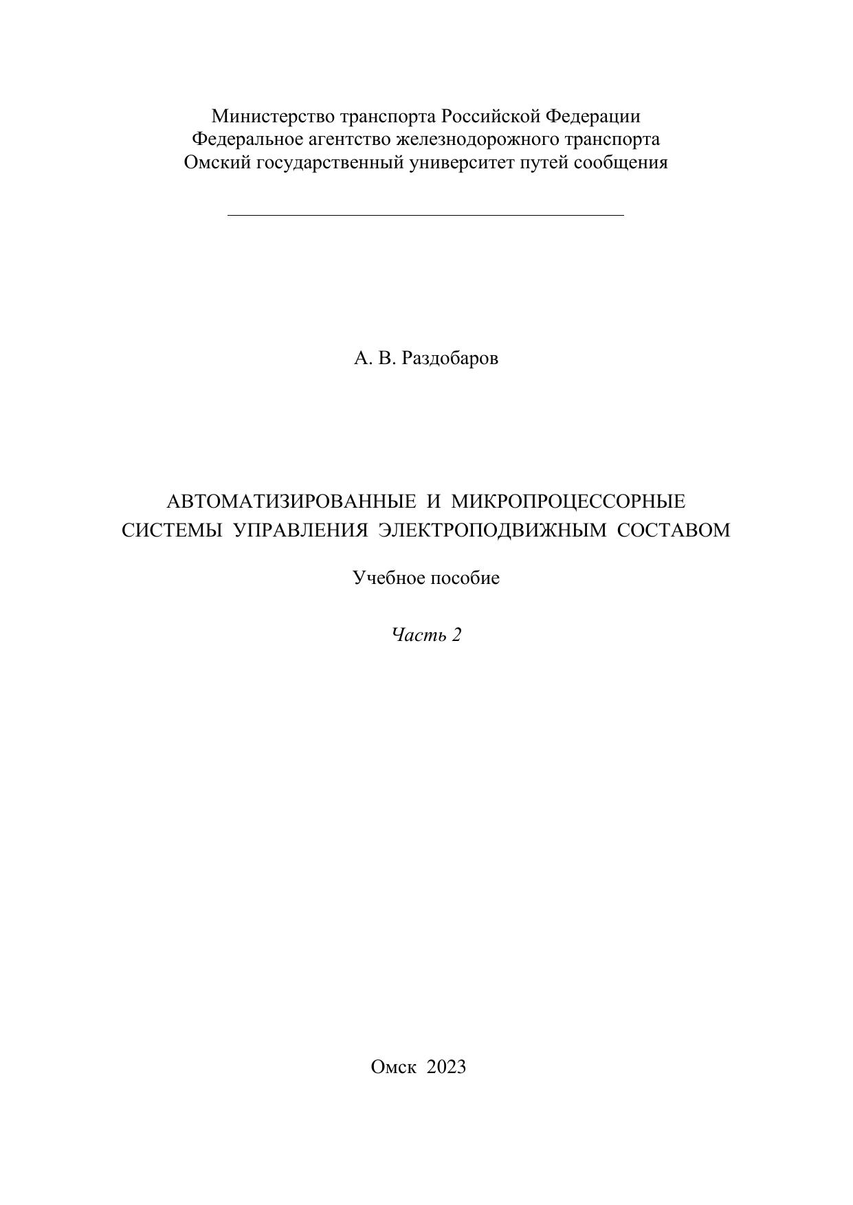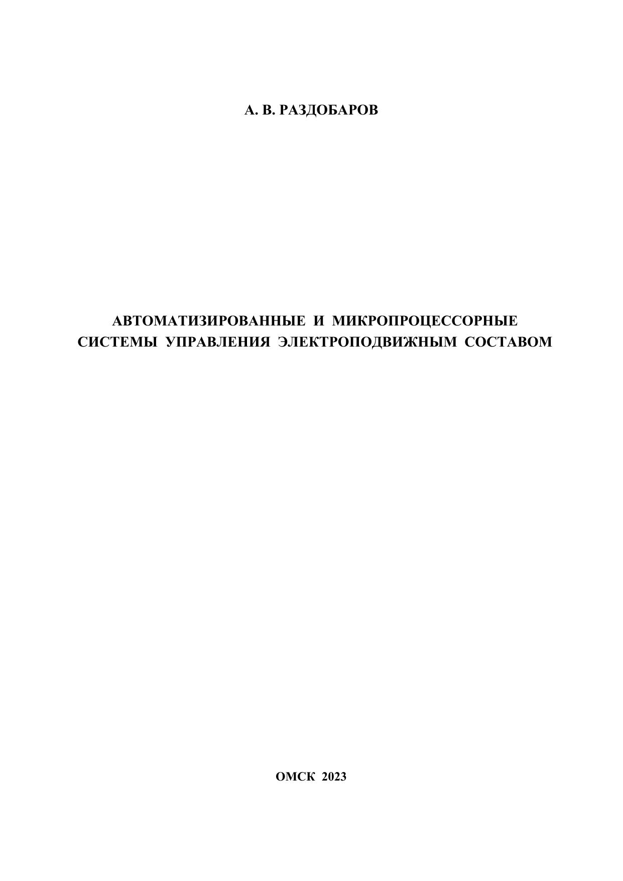 Раздобаров, А.В. Автоматизированные и микропроцессорные системы управления электроподвижным составом : учебник / А. В. Раздобаров. — Омск : ОмГУПС, 2023. — 128 с. — 978-5-949-41317-3. — Текст : электронный // УМЦ ЖДТ : электронная библиотека. — URL: https://umczdt.ru/books/1212/297556/ (дата обращения 14.01.2026). — Режим доступа: по подписке.