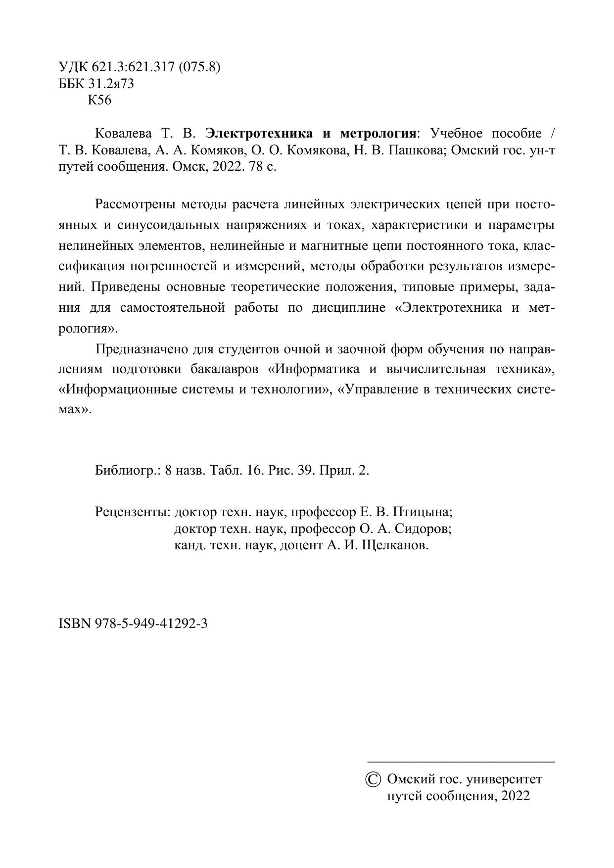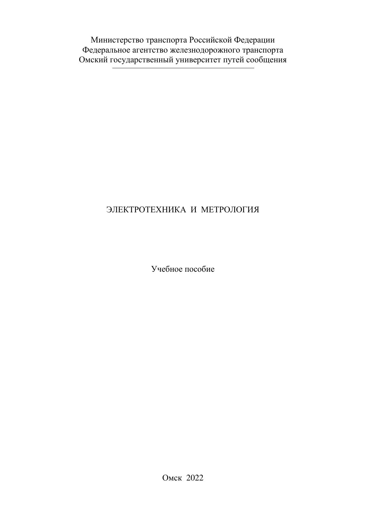 Ковалева, Т.В. Электротехника и метрология : учебник / Т. В. Ковалева, А. А. Комяков, О. О. Комякова, Н. В. Пашкова. — Омск : ОмГУПС, 2022. — 78 с. — 978-5-949-41292-3. — Текст : электронный // УМЦ ЖДТ : электронная библиотека. — URL: https://umczdt.ru/books/1212/297570/ (дата обращения 14.02.2026). — Режим доступа: по подписке.