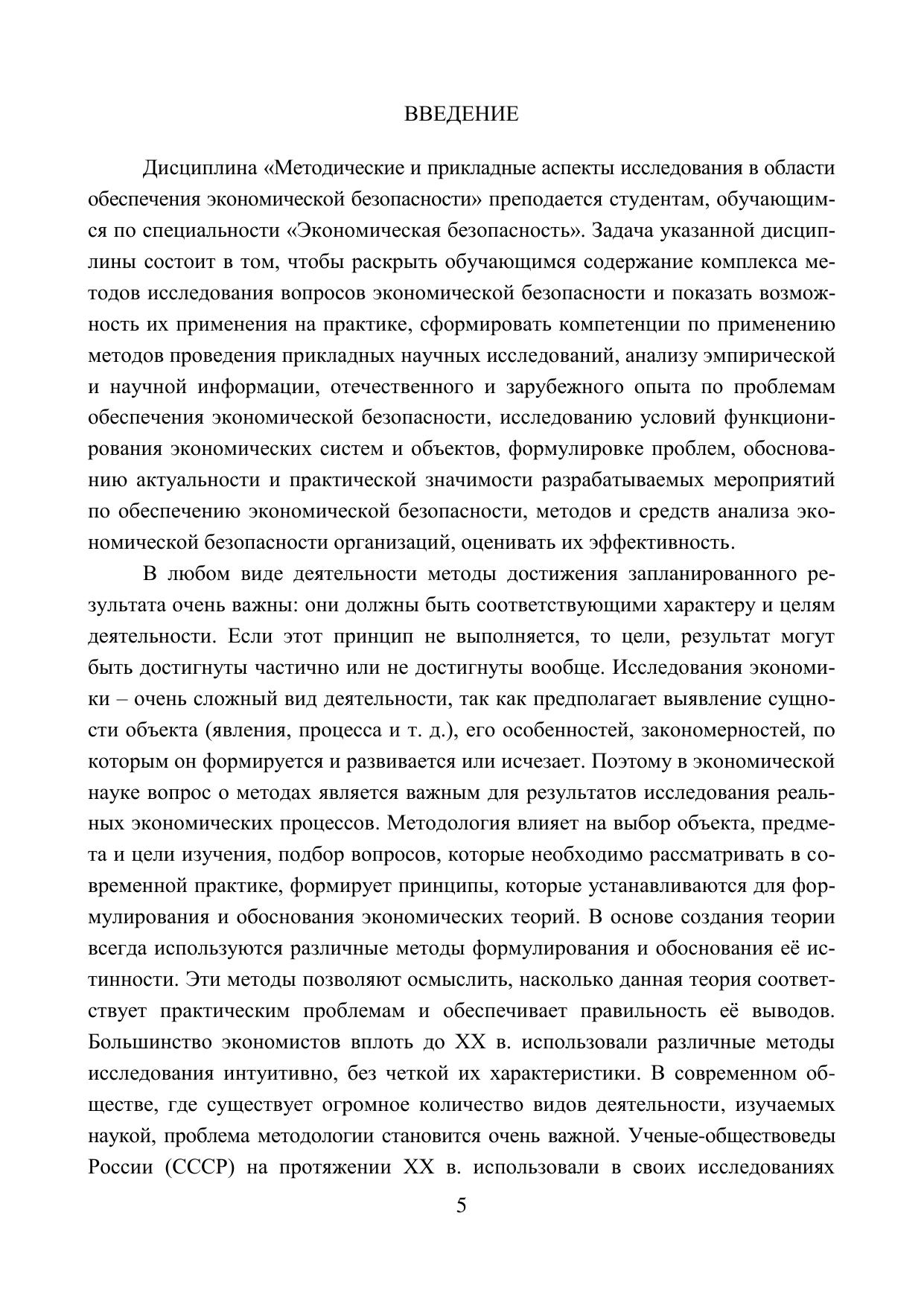 проблем данной специальности в аспекте применения различных методов, принятых в современной науке. Дается трактовка элементов общей методологии – понятий, основания, видов применяемых методов в науке, а затем рассматриваются прикладные подходы к использованию научных методов при разработке тем экономической безопасности.