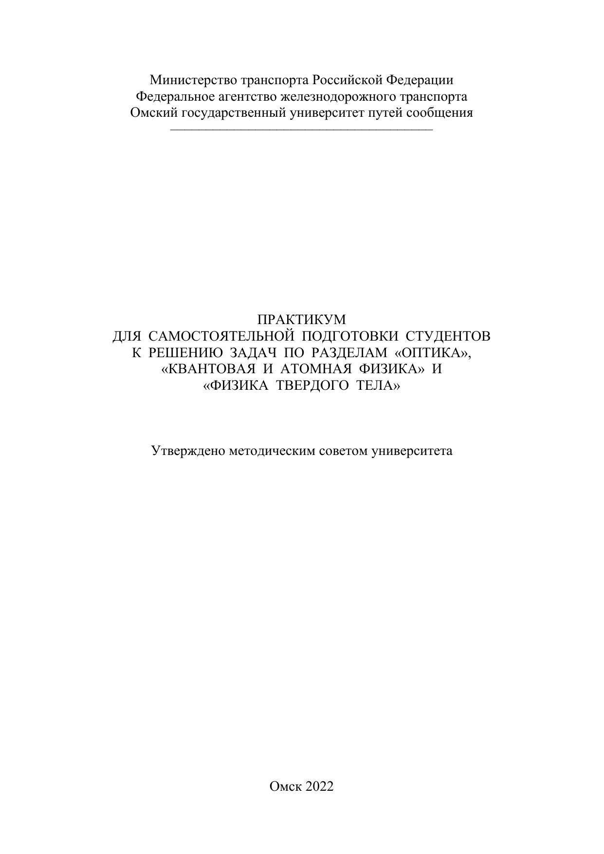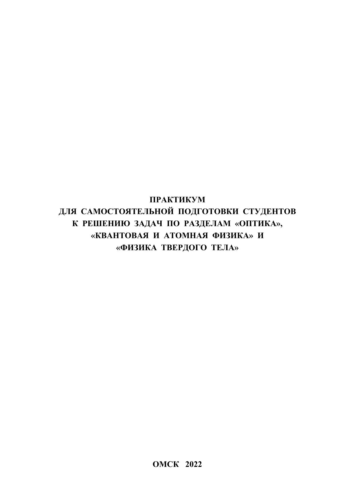 Практикум для самостоятельной подготовки студентов к решению задач по разделам «Оптика», «Квантовая и атомная физика» и «Физика твердого тела»
