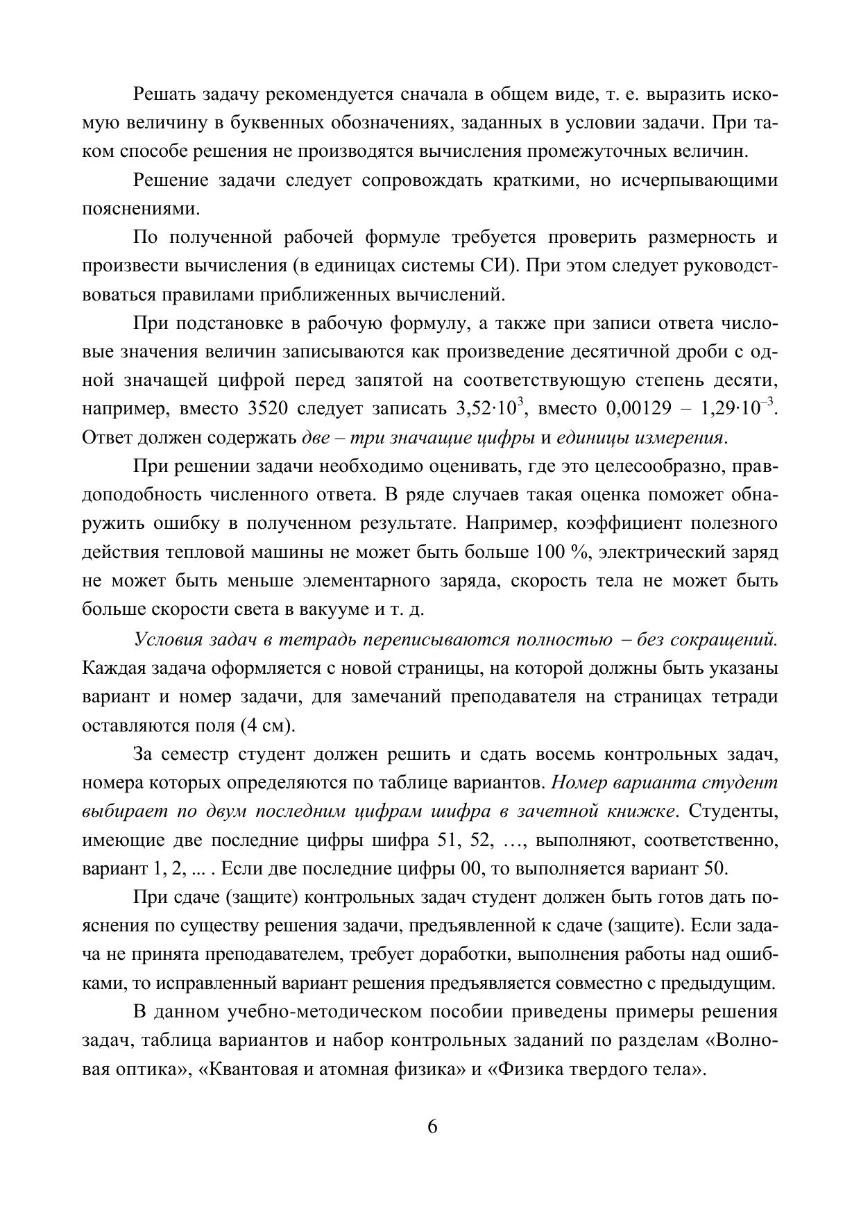 Содержатся методические рекомендации по изучению курса физики, приведены правила выполнения контрольных заданий, примеры решения задач, контрольные задания по разделам «Волновая оптика», «Квантовая и атомная физика» и «Физика твердого тела», библиографический список.