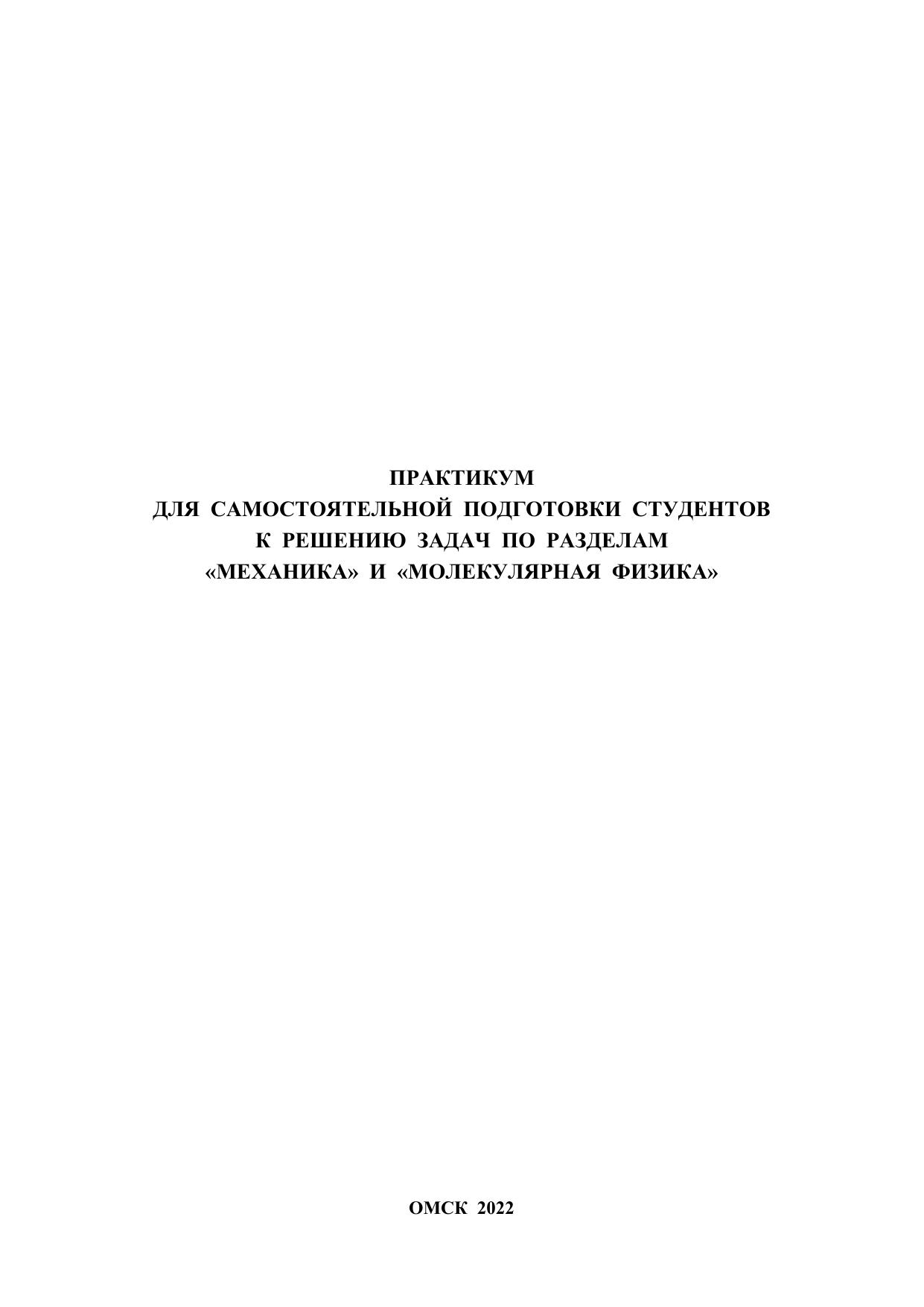 Практикум для самостоятельной подготовки студентов к решению задач по разделам «Механика» и «Молекулярная физика»