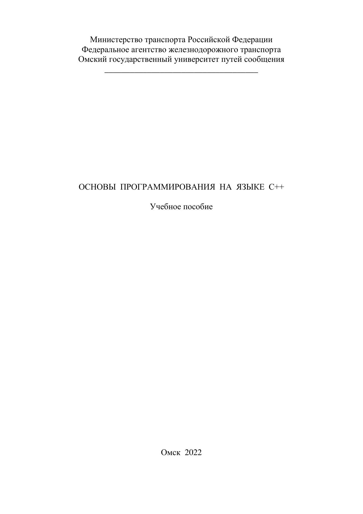 Давыдов, А.И. Основы программирования на языке С++ : учебник / А. И. Давыдов, Е. С. Калинина, И. Л. Саля, С. А. Ступаков. — Омск : ОмГУПС, 2022. — 86 с. — 978-5-949-41295-4. — Текст : электронный // УМЦ ЖДТ : электронная библиотека. — URL: https://umczdt.ru/books/1212/297594/ (дата обращения 08.12.2025). — Режим доступа: по подписке.