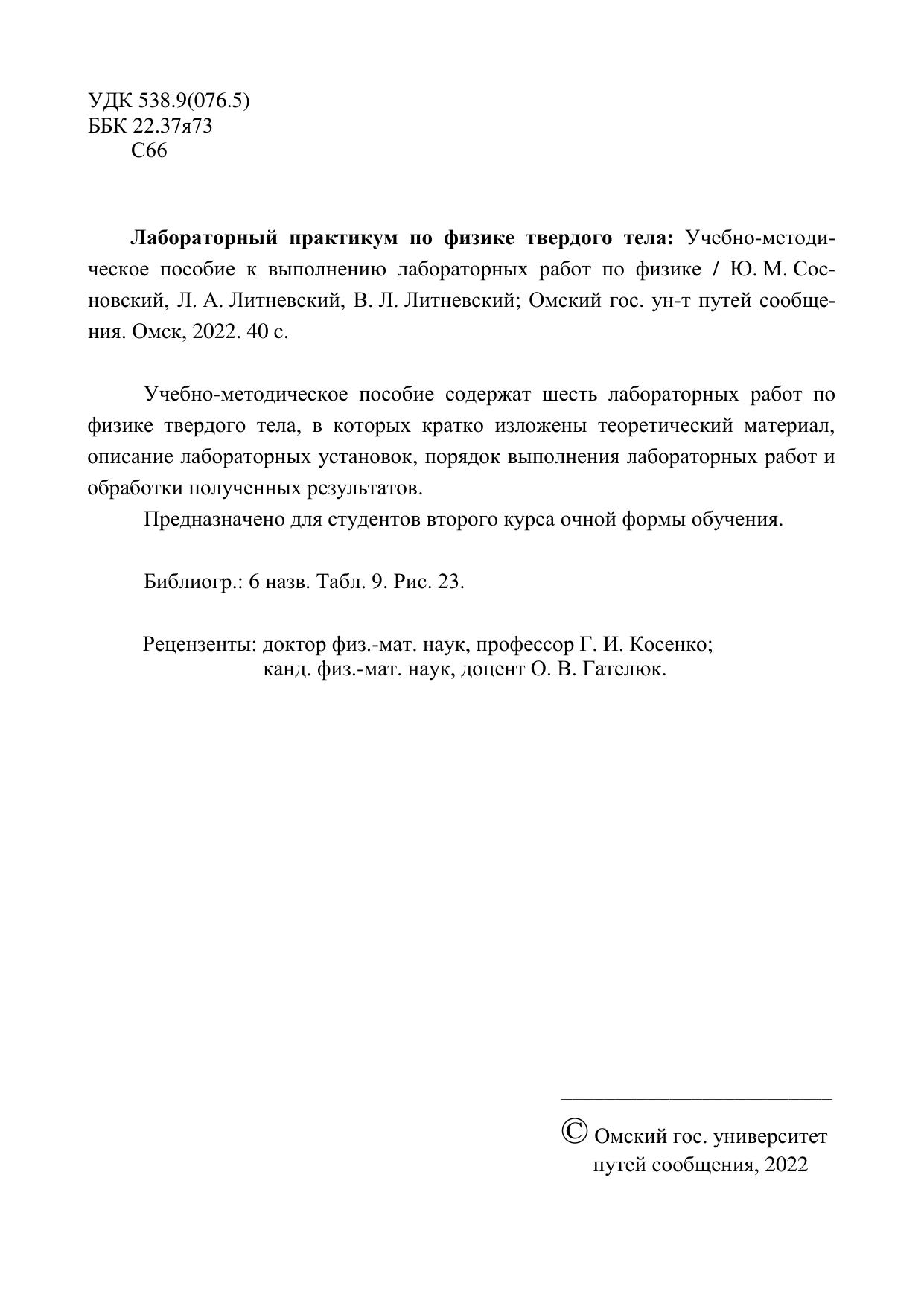 Сосновский, Ю.М. Лабораторный практикум по физике твердого тела: Учебно-методическое пособие к выполнению лабораторных работ по физике : учебно-методическое пособие / Ю. М. Сосновский. — : , 2022. — 40 с. — Текст : электронный // УМЦ ЖДТ : электронная библиотека. — URL: https://umczdt.ru/books/1212/298938/ (дата обращения 10.02.2026). — Режим доступа: по подписке.