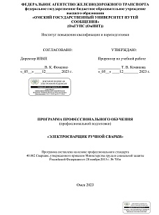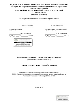 Электросварщик ручной сварки : программа профессиональной подготовки / . — Омск : ОмГУПС, 2023. — 34 с. — Текст : электронный // УМЦ ЖДТ : электронная библиотека. — URL: https://umczdt.ru/books/1212/299720/ (дата обращения 15.04.2026). — Режим доступа: по подписке.
