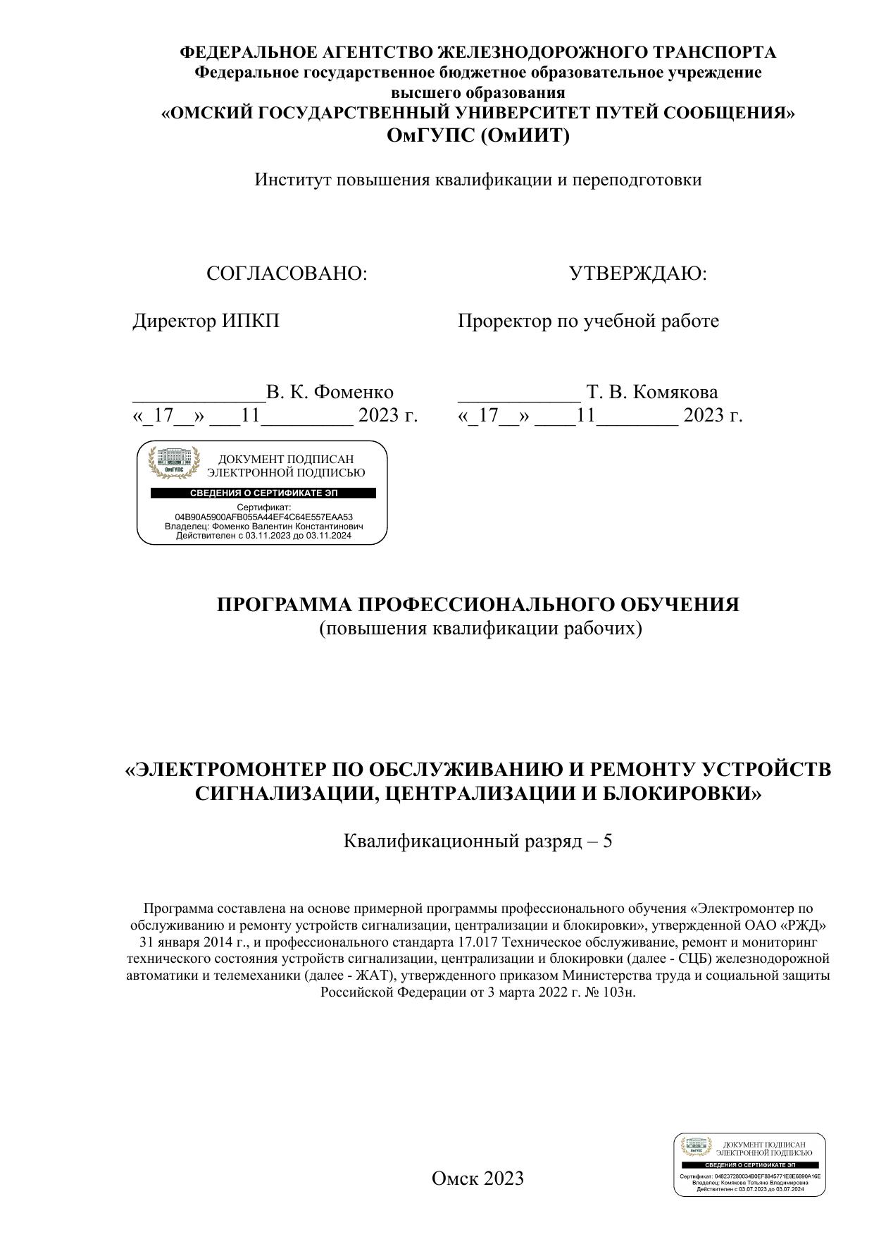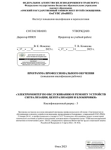 Электромонтер по обслуживанию и ремонту устройств сигнализации, централизации и блокировки : программа повышения квалификации / . — : , 2023. — 64 с. — Текст : электронный // УМЦ ЖДТ : электронная библиотека. — URL: https://umczdt.ru/books/1212/299721/ (дата обращения 16.04.2026). — Режим доступа: по подписке.