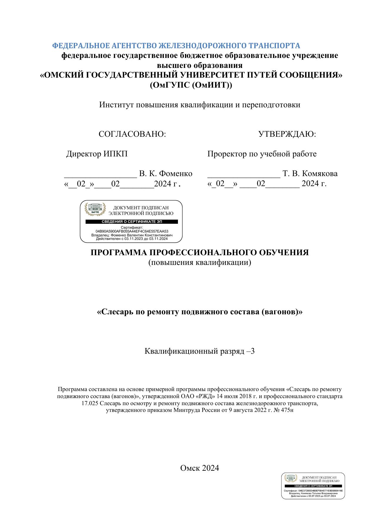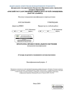 Слесарь по ремонту подвижного состава (вагонов) : программа профессиональной подготовки / . — Омск : ОмГУПС, 2024. — 41 с. — Текст : электронный // УМЦ ЖДТ : электронная библиотека. — URL: https://umczdt.ru/books/1212/299725/ (дата обращения 14.04.2026). — Режим доступа: по подписке.