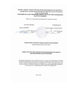 Оператор по обработке поездной информации и перевозочных документов : программа профессиональной подготовки / . — Омск : ОмГУПС, 2024. — 13 с. — Текст : электронный // УМЦ ЖДТ : электронная библиотека. — URL: https://umczdt.ru/books/1212/299734/ (дата обращения 17.04.2026). — Режим доступа: по подписке.
