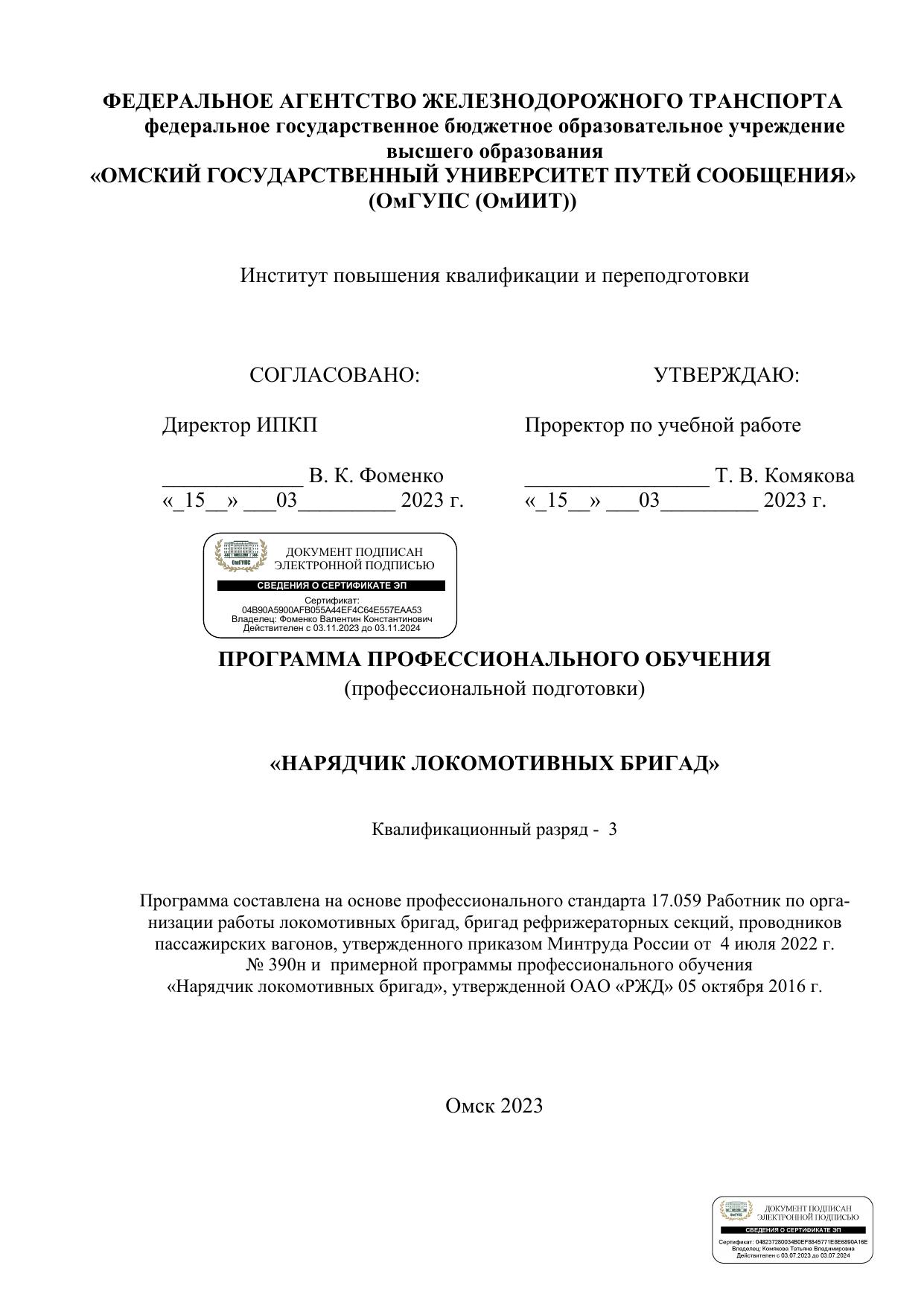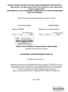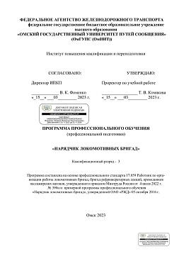 Нарядчик локомотивных бригад : программа профессиональной подготовки / . — Омск : ОмГУПС, 2023. — 31 с. — Текст : электронный // УМЦ ЖДТ : электронная библиотека. — URL: https://umczdt.ru/books/1212/299738/ (дата обращения 12.03.2026). — Режим доступа: по подписке.