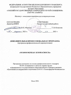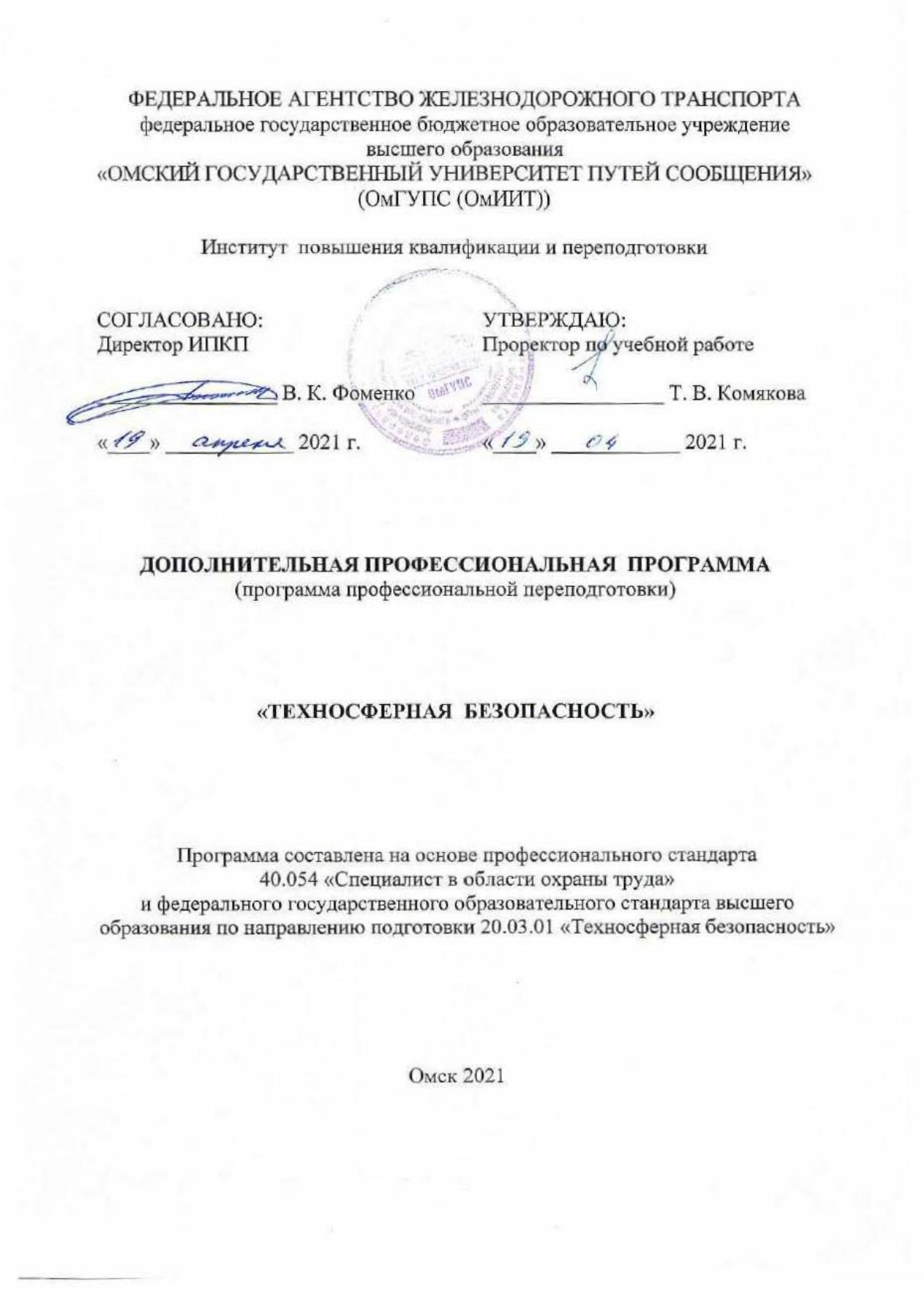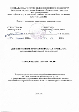 Техносферная безопасность : программа профессиональной переподготовки / . — Омск : ОмГУПС, 2021. — 72 с. — Текст : электронный // УМЦ ЖДТ : электронная библиотека. — URL: https://umczdt.ru/books/1212/299765/ (дата обращения 16.04.2026). — Режим доступа: по подписке.