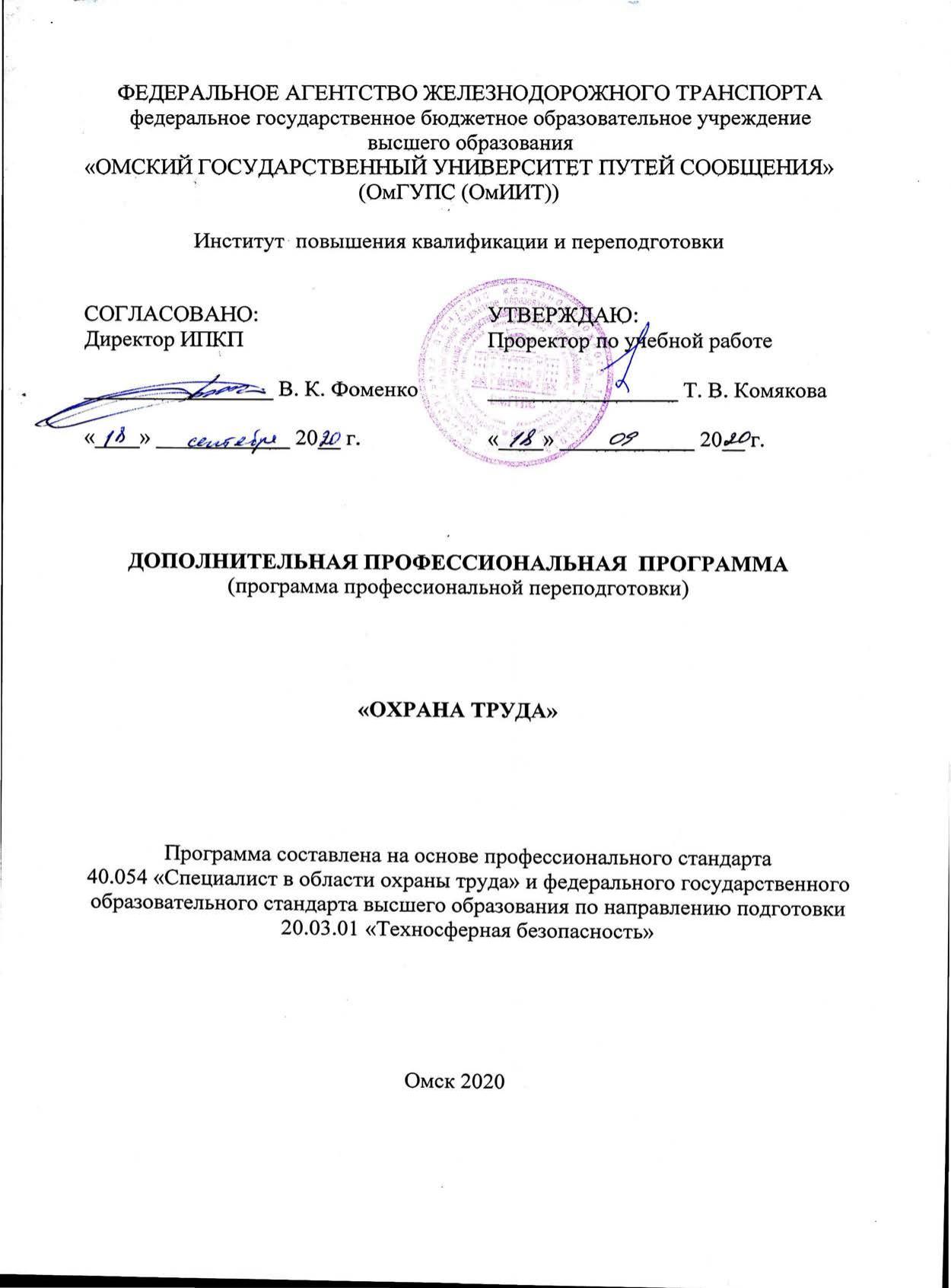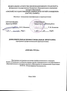 Охрана труда : программа профессиональной переподготовки / . — Омск : ОмГУПС, 2020. — 93 с. — Текст : электронный // УМЦ ЖДТ : электронная библиотека. — URL: https://umczdt.ru/books/1212/299775/ (дата обращения 16.04.2026). — Режим доступа: по подписке.