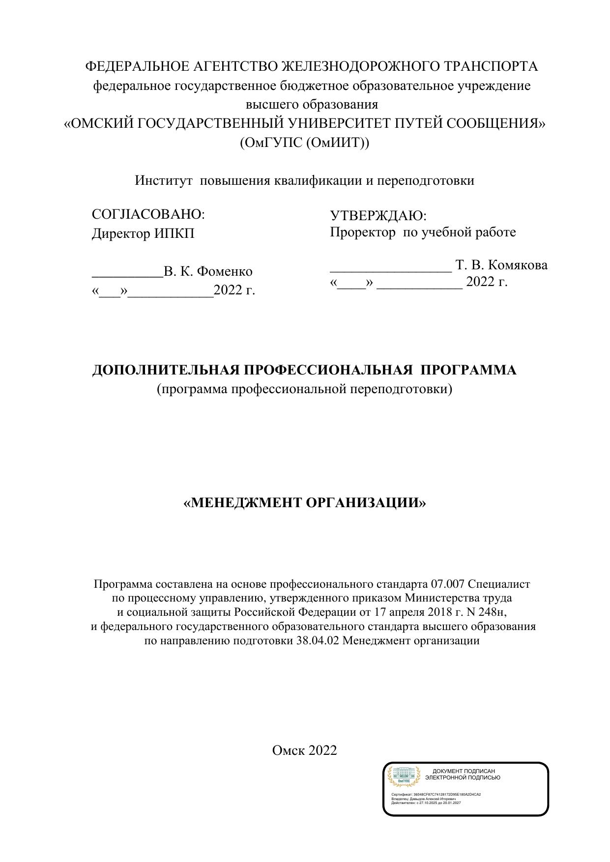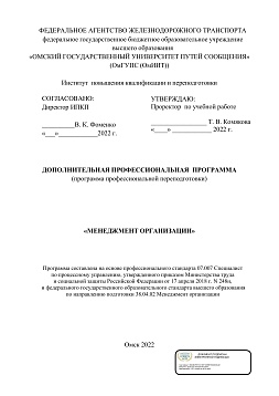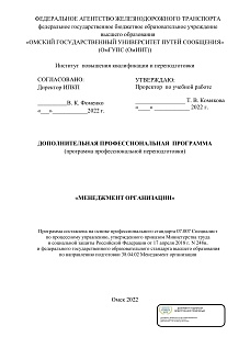 Менеджмент организации : программа профессиональной переподготовки / . — Омск : ОмГУПС, 2022. — 51 с. — Текст : электронный // УМЦ ЖДТ : электронная библиотека. — URL: https://umczdt.ru/books/1212/299777/ (дата обращения 06.03.2026). — Режим доступа: по подписке.