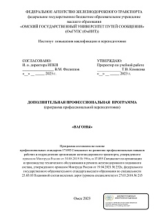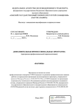 Вагоны : программа профессиональной переподготовки / . — Омск : ОмГУПС, 2023. — 85 с. — Текст : электронный // УМЦ ЖДТ : электронная библиотека. — URL: https://umczdt.ru/books/1212/299784/ (дата обращения 17.04.2026). — Режим доступа: по подписке.