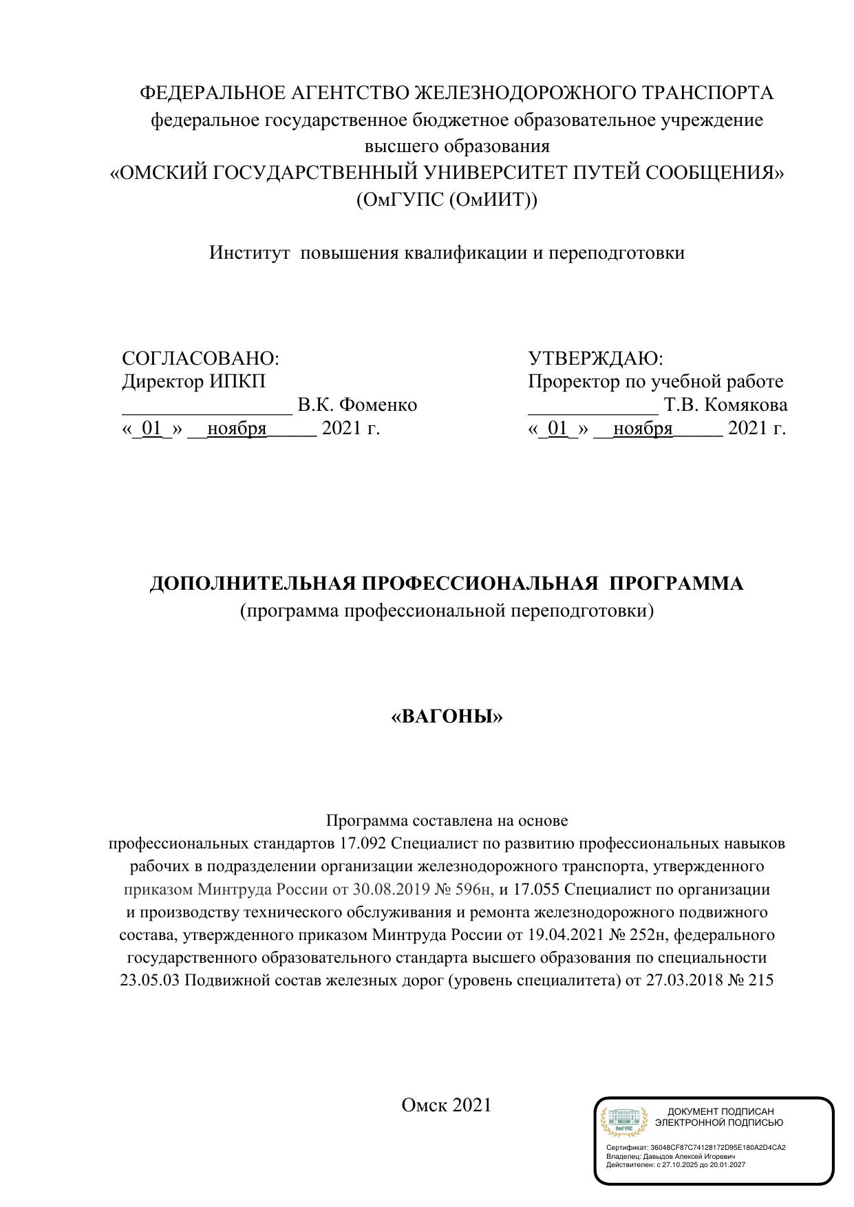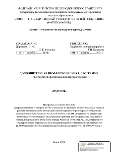 Вагоны : программа профессиональной переподготовки / . — Омск : ОмГУПС, 2021. — 68 с. — Текст : электронный // УМЦ ЖДТ : электронная библиотека. — URL: https://umczdt.ru/books/1212/299785/ (дата обращения 16.04.2026). — Режим доступа: по подписке.
