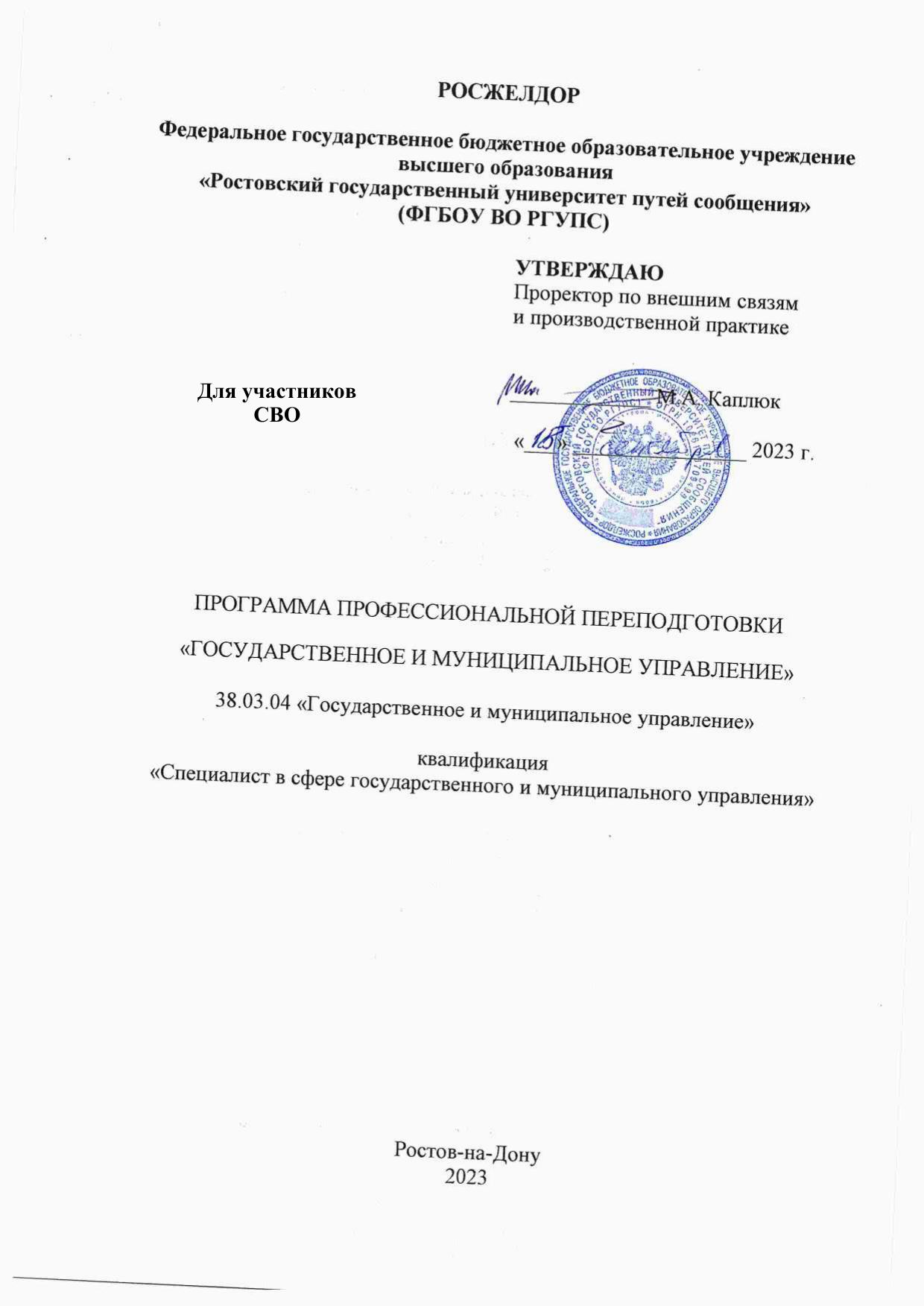 Специалист в сфере государственного и муниципального управления : программа профессиональной переподготовки / . — Ростов-на-Дону : РГУПС, 2023. — 21 с. — Текст : электронный // УМЦ ЖДТ : электронная библиотека. — URL: https://umczdt.ru/books/1214/299713/ (дата обращения 12.03.2026). — Режим доступа: по подписке.