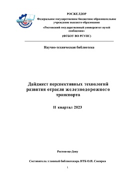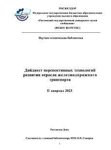 Сокирка, О.П. Дайджест перспективных технологий развития отрасли железнодорожного транспорта IV квартал 2023 : дайджест / О. П. Сокирка. — Ростов-на-Дону : РГУПС, 2023. — 98 с. — Текст : электронный // УМЦ ЖДТ : электронная библиотека. — URL: https://umczdt.ru/books/1214/299952/ (дата обращения 15.04.2026). — Режим доступа: по подписке.