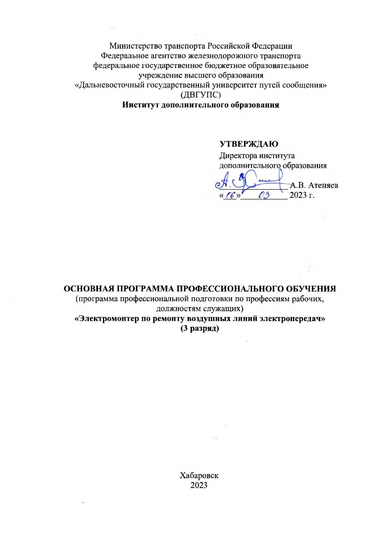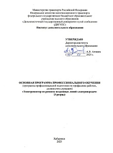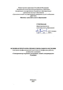 Электромонтер по ремонту воздушных линий электропередач 3-го разряда : учебный план / . — Хабаровск : ДвГУПС, 2023. — 4 с. — Текст : электронный // УМЦ ЖДТ : электронная библиотека. — URL: https://umczdt.ru/books/1215/299606/ (дата обращения 06.03.2026). — Режим доступа: по подписке.