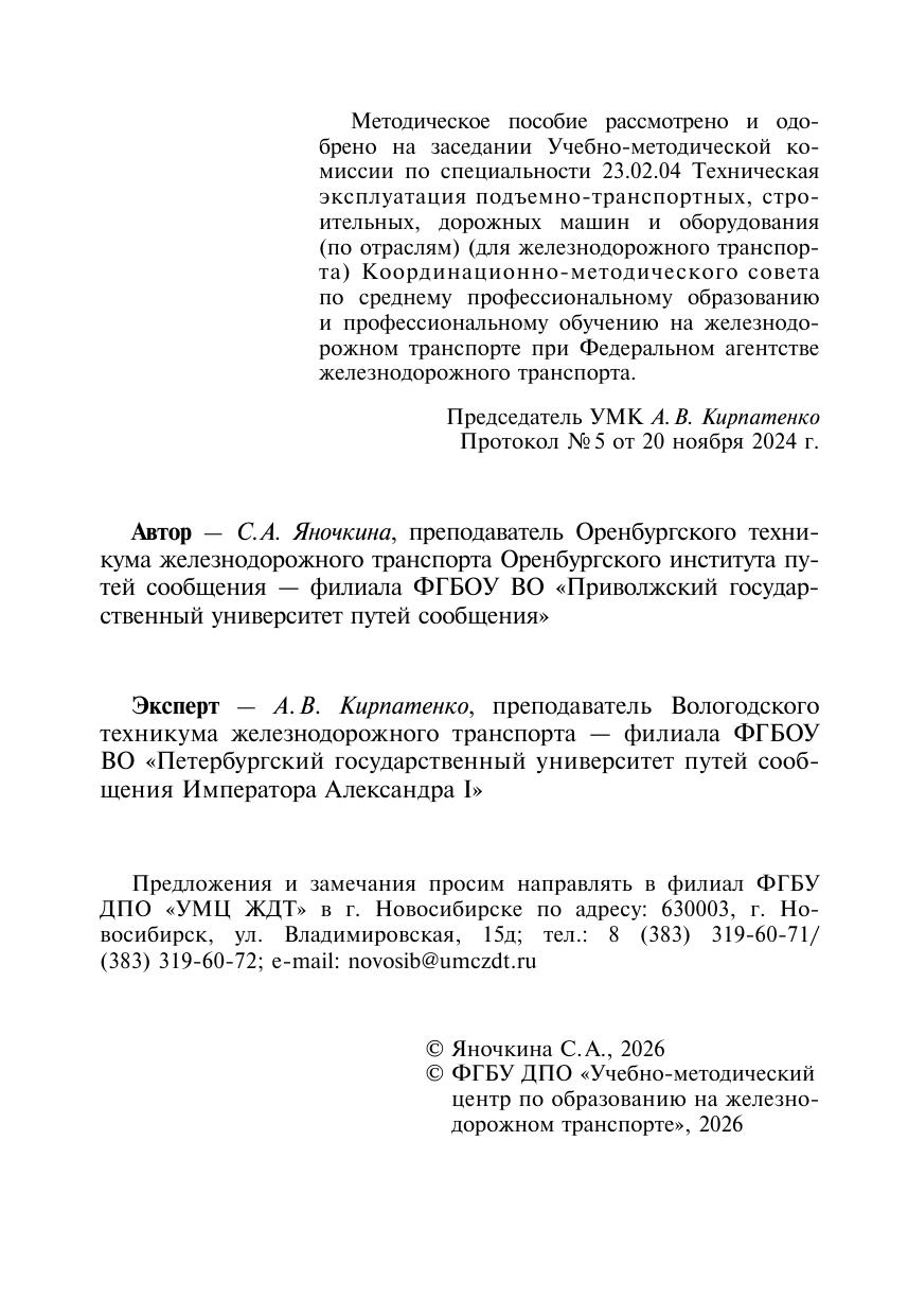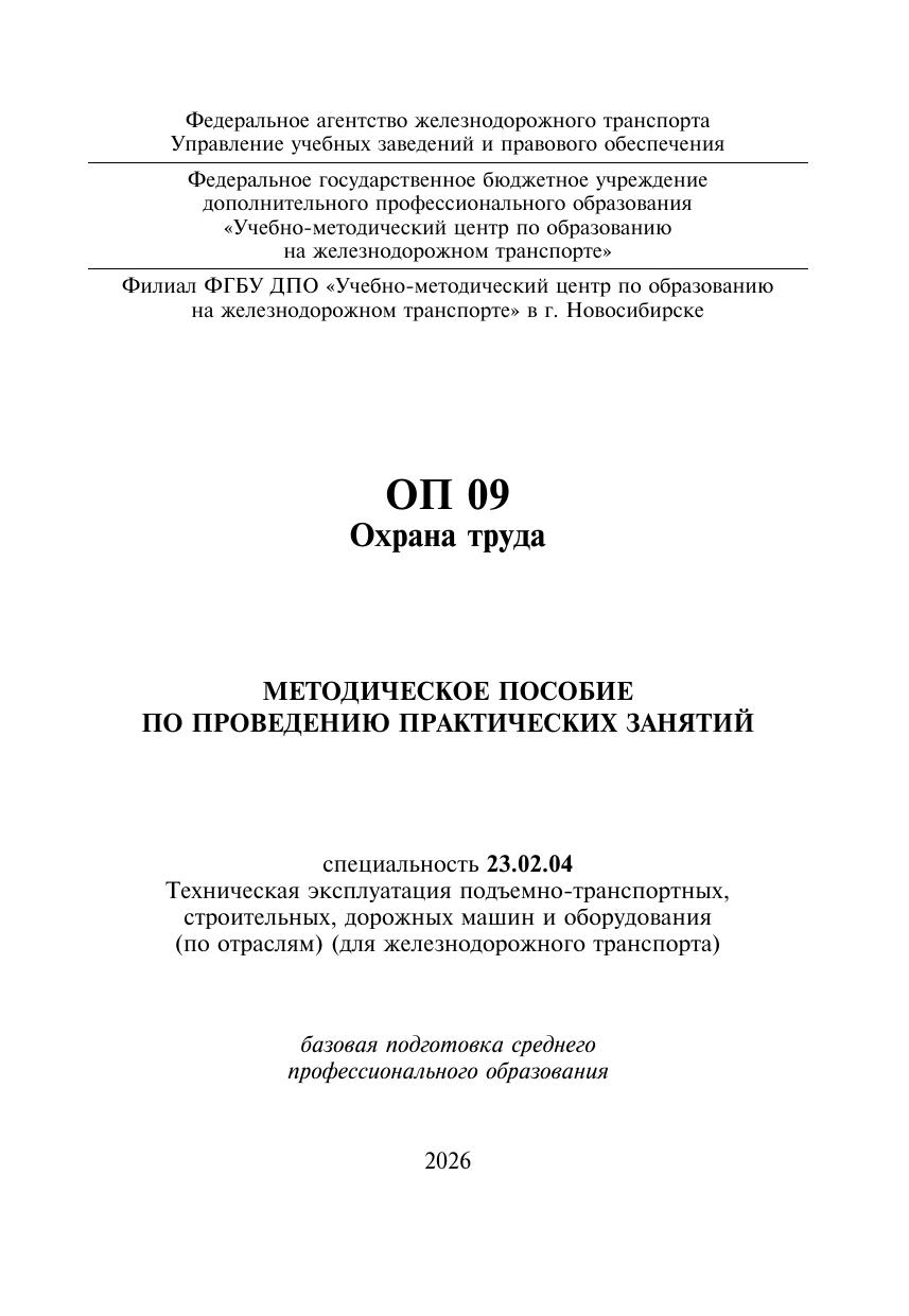 Яночкина, С.А. Методическое пособие по проведению практических занятий ОП 09 Охрана труда : методическое пособие / С. А. Яночкина. — Москва : УМЦ ЖДТ, 2026. — 68 с. — Текст : электронный // УМЦ ЖДТ : электронная библиотека. — URL: https://umczdt.ru/books/1228/300694/ (дата обращения 17.04.2026). — Режим доступа: по подписке.