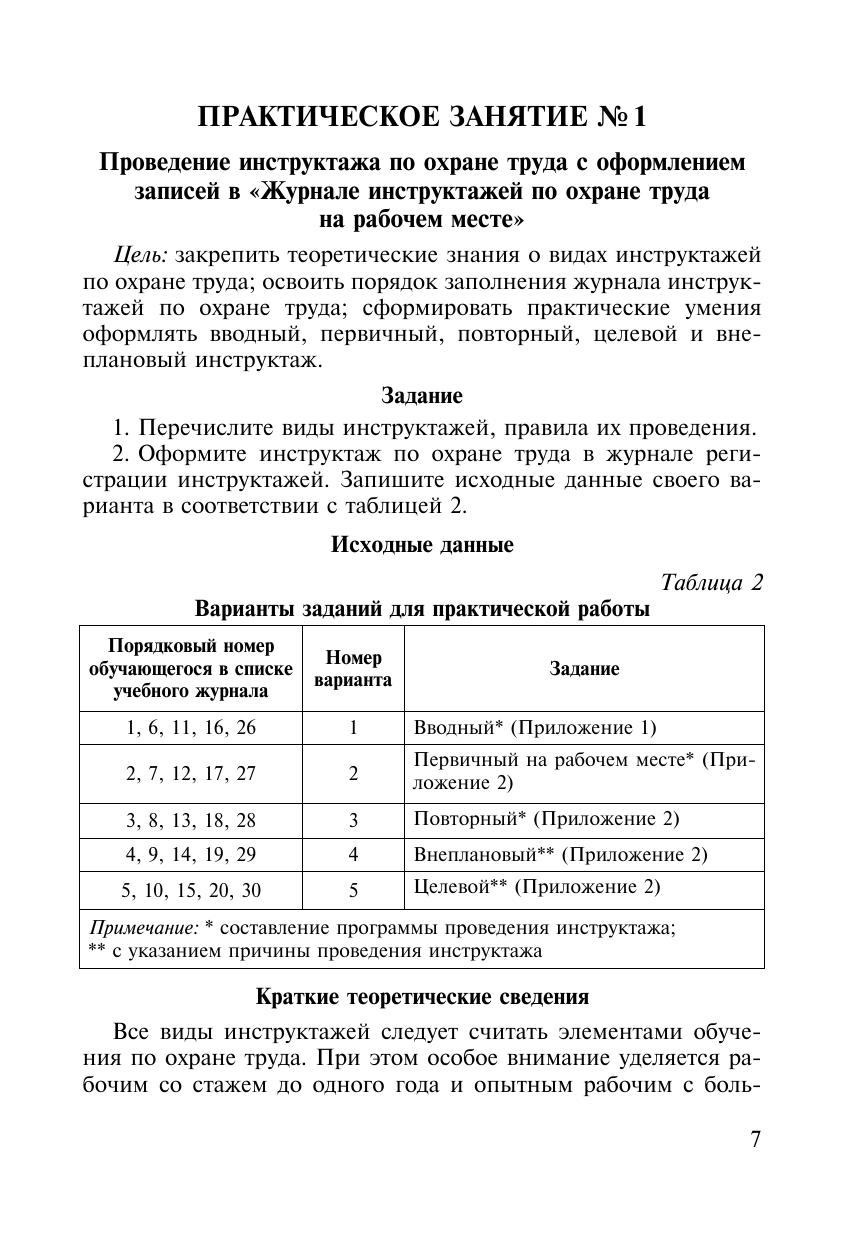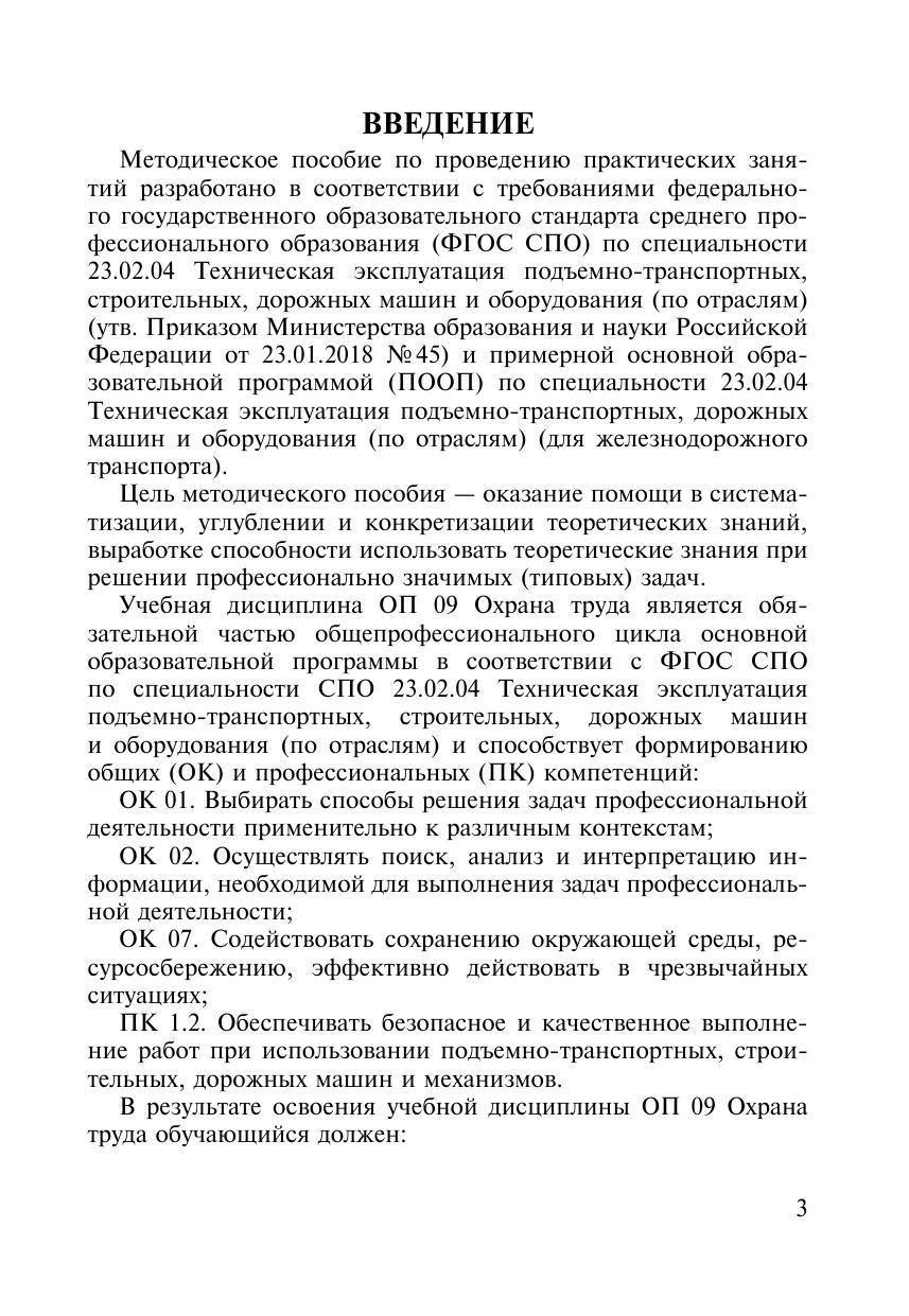 Методическое пособие по проведению практических занятий ОП 09 Охрана труда