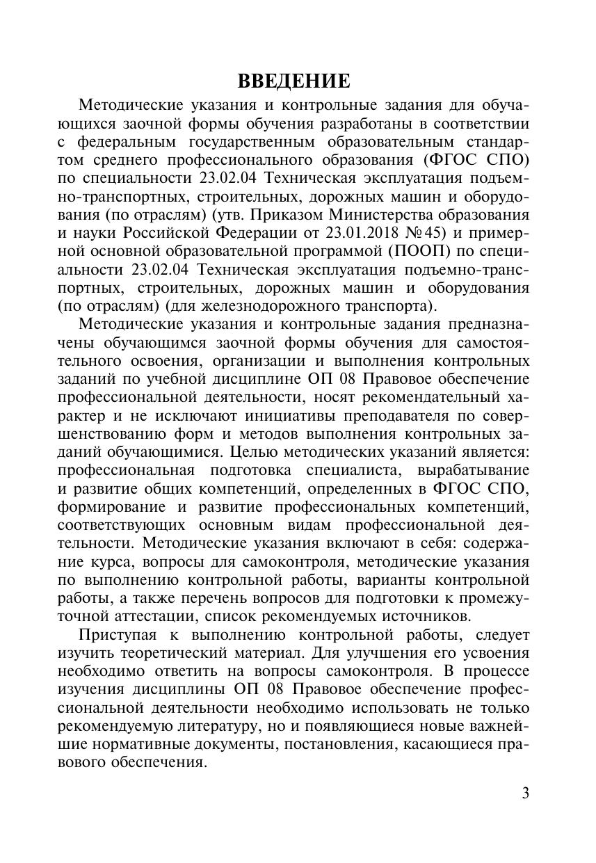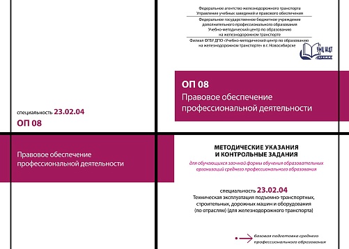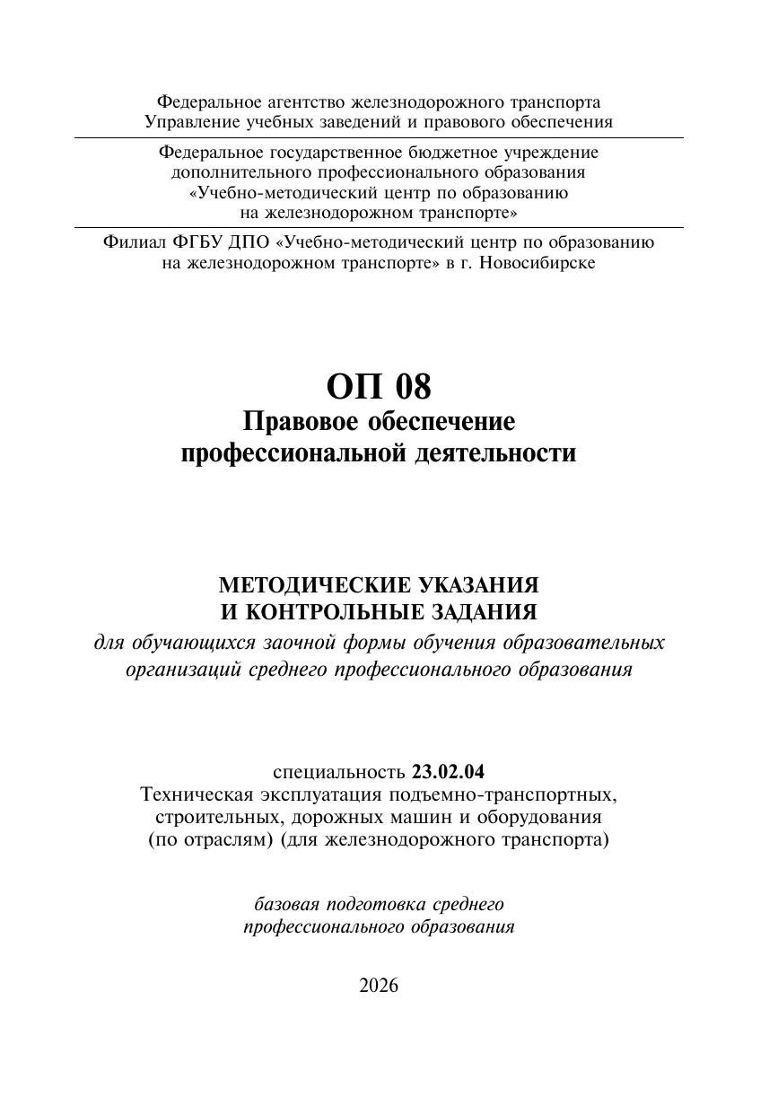 Воронин, Н.В. Методические указания и контрольные задания для обучающихся заочной формы обучения образовательных организаций среднего профессионального образования ОП 08 Правовое обеспечение профессиональной деятельности : методическое пособие / Н. В. Воронин. — Москва : УМЦ ЖДТ, 2026. — 76 с. — Текст : электронный // УМЦ ЖДТ : электронная библиотека. — URL: https://umczdt.ru/books/1228/300699/ (дата обращения 17.04.2026). — Режим доступа: по подписке.