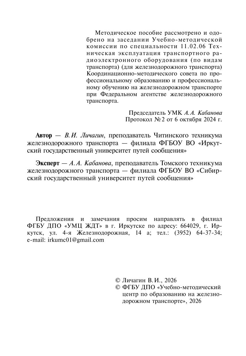 Методическое пособие разработано в соответствии с ФГОС СПО по специальности 11.02.06 и ПП ПМ 01 Монтаж, ввод в действие и эксплуатация устройств транспортного радиоэлектронного оборудования. Предназначено для обучающихся и преподавателей в качестве руководства при выполнении лабораторных работ и практических занятий.