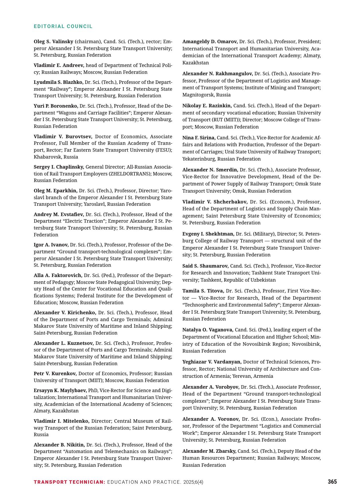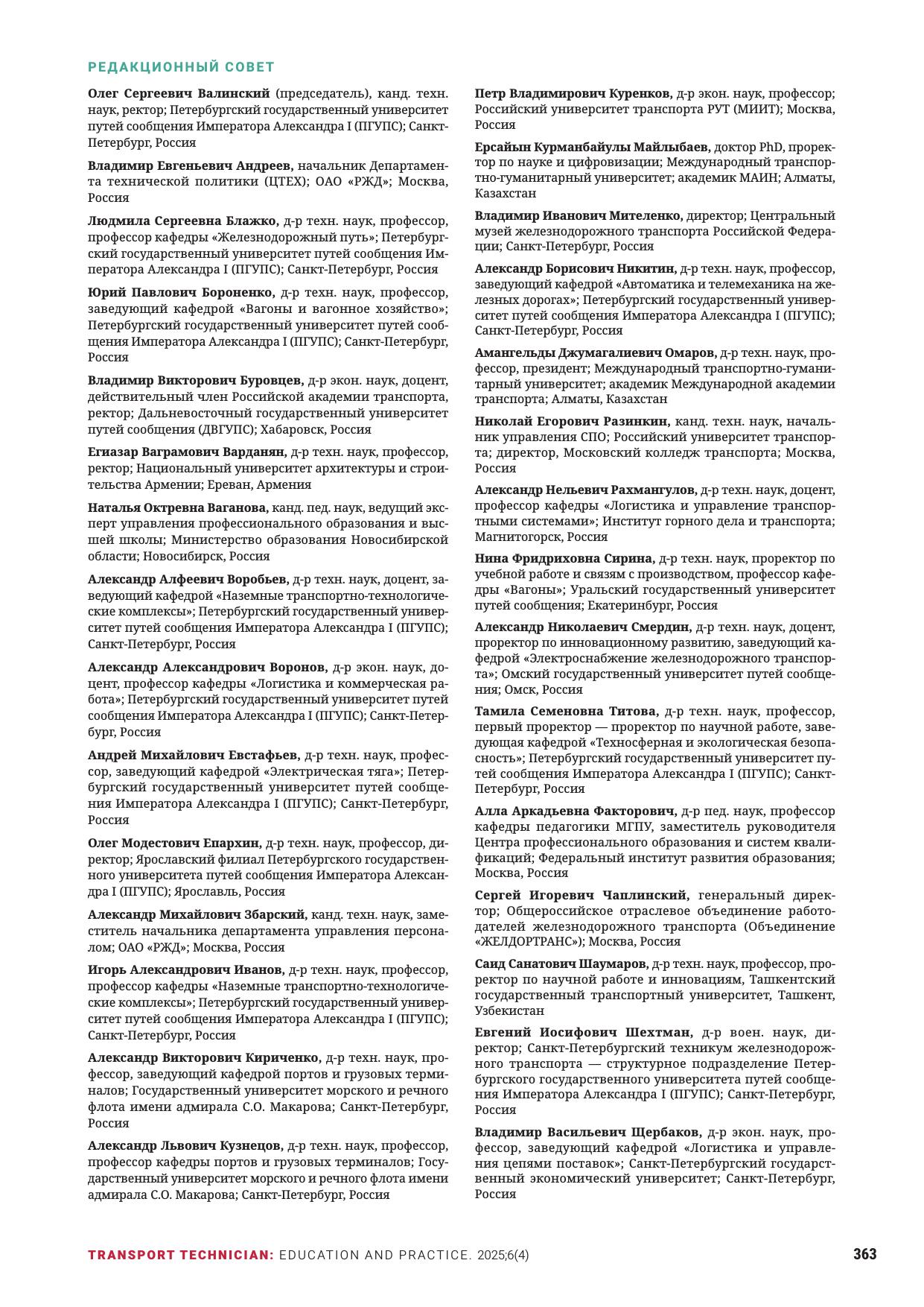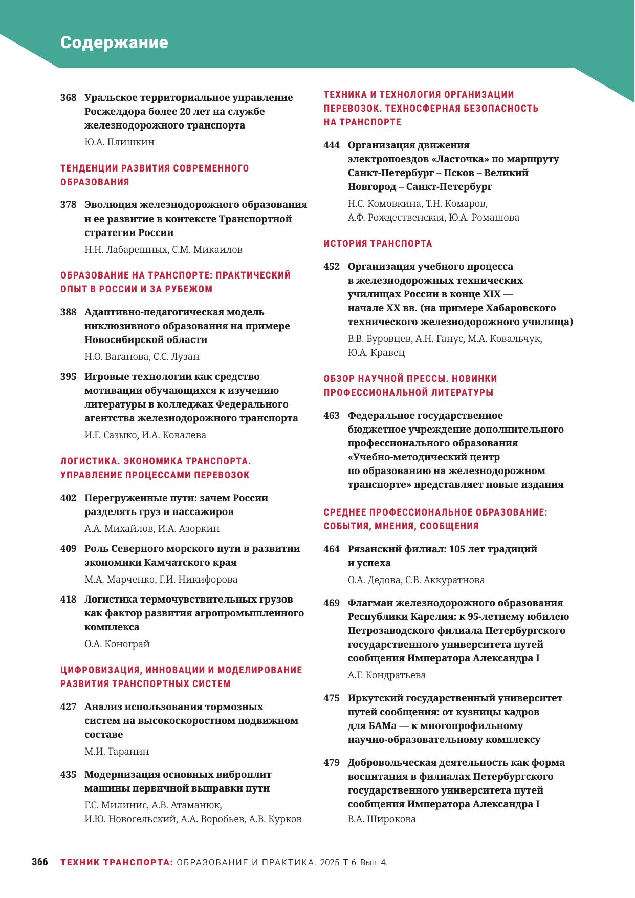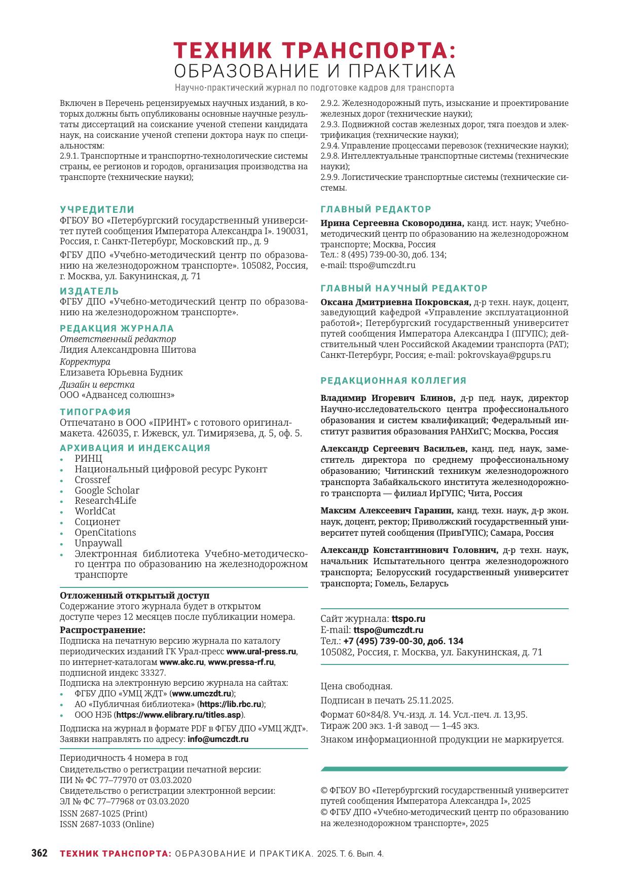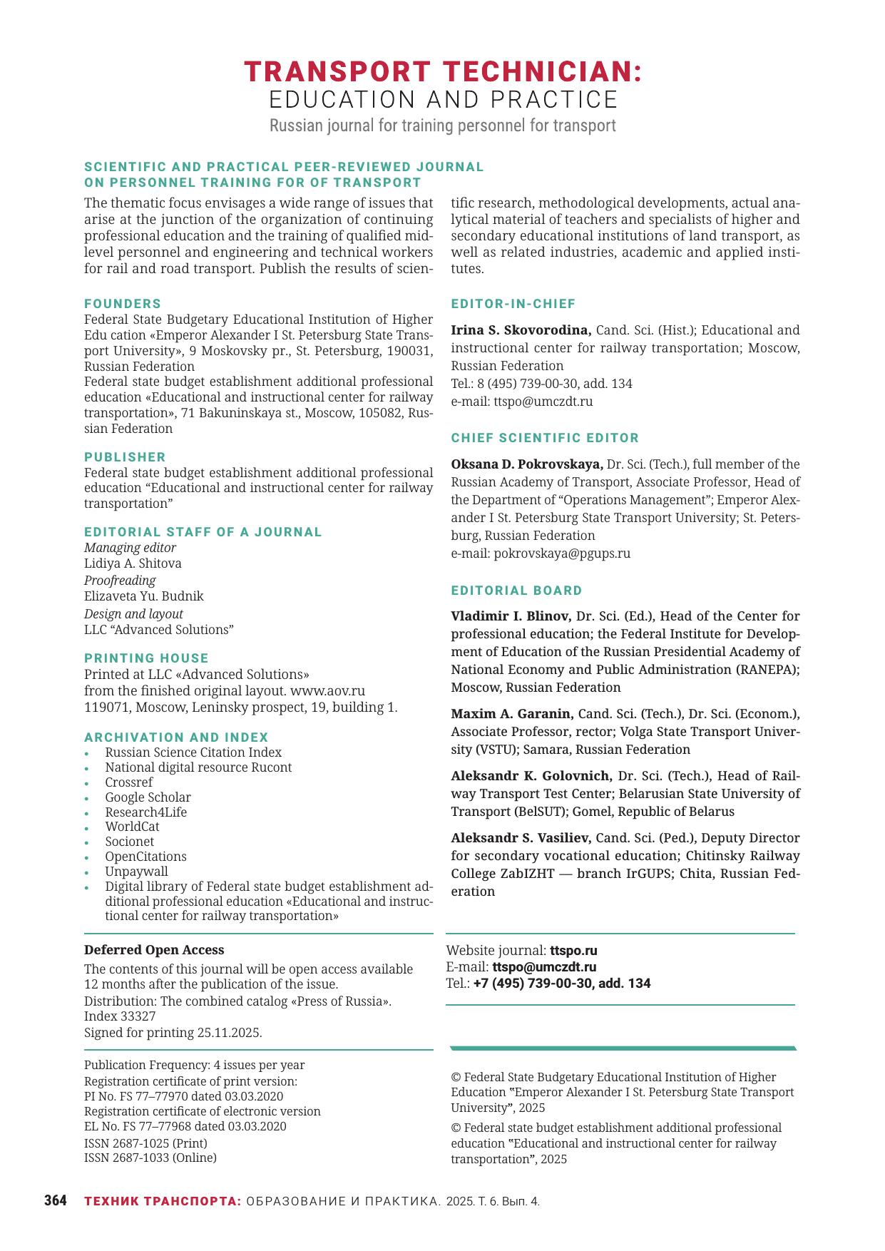 Техник транспорта: образование и практика. 2025. Том 6. Выпуск 4