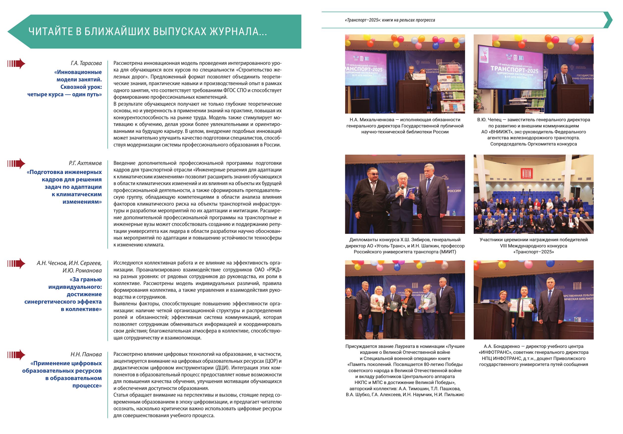 Научно-практический журнал по подготовке кадров для транспорта.