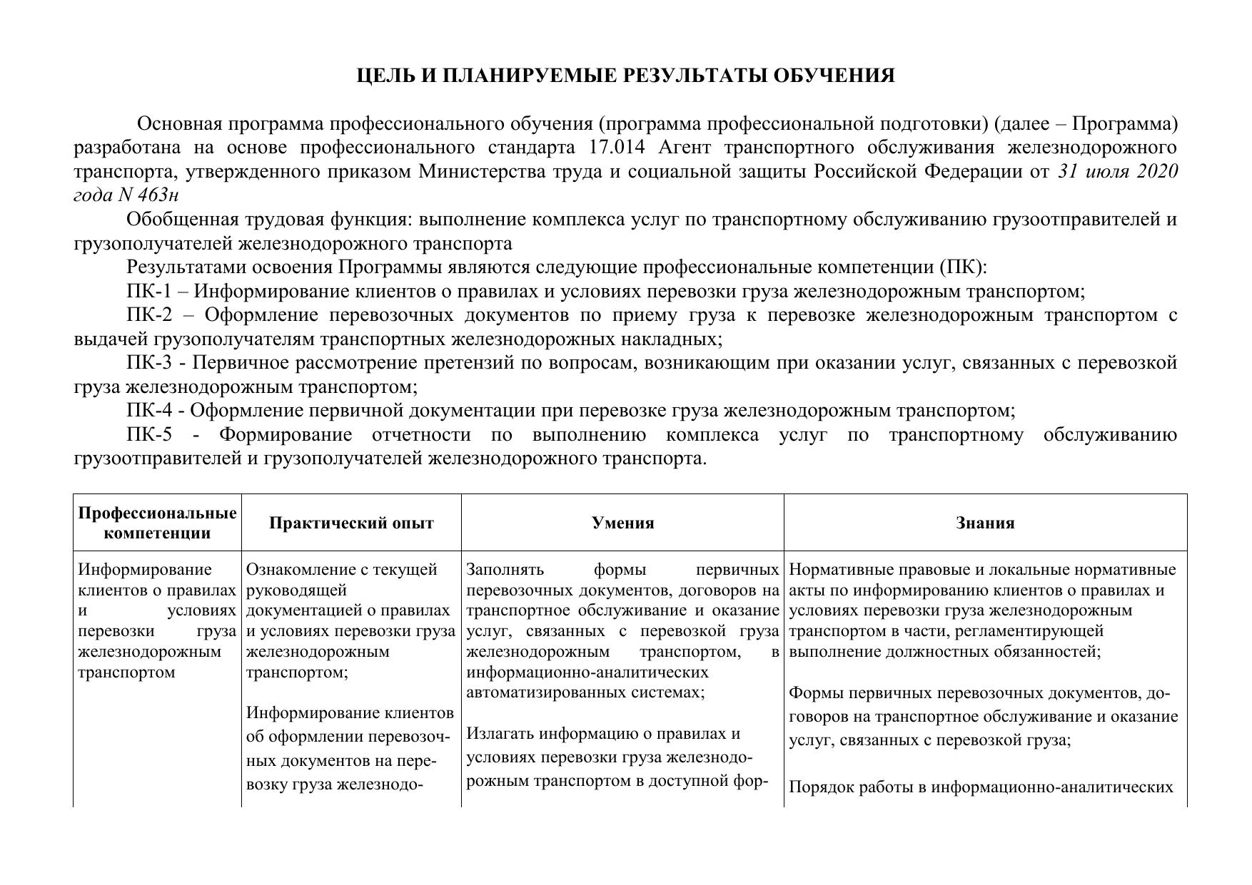 Агент системы фирменного транспортного обслуживания : программа профессиональной подготовки / . — Санкт-Петербург : ПГУПС, 2026. — 30 с. — Текст : электронный // УМЦ ЖДТ : электронная библиотека. — URL: https://umczdt.ru/books/1283/299908/ (дата обращения 17.03.2026). — Режим доступа: по подписке.