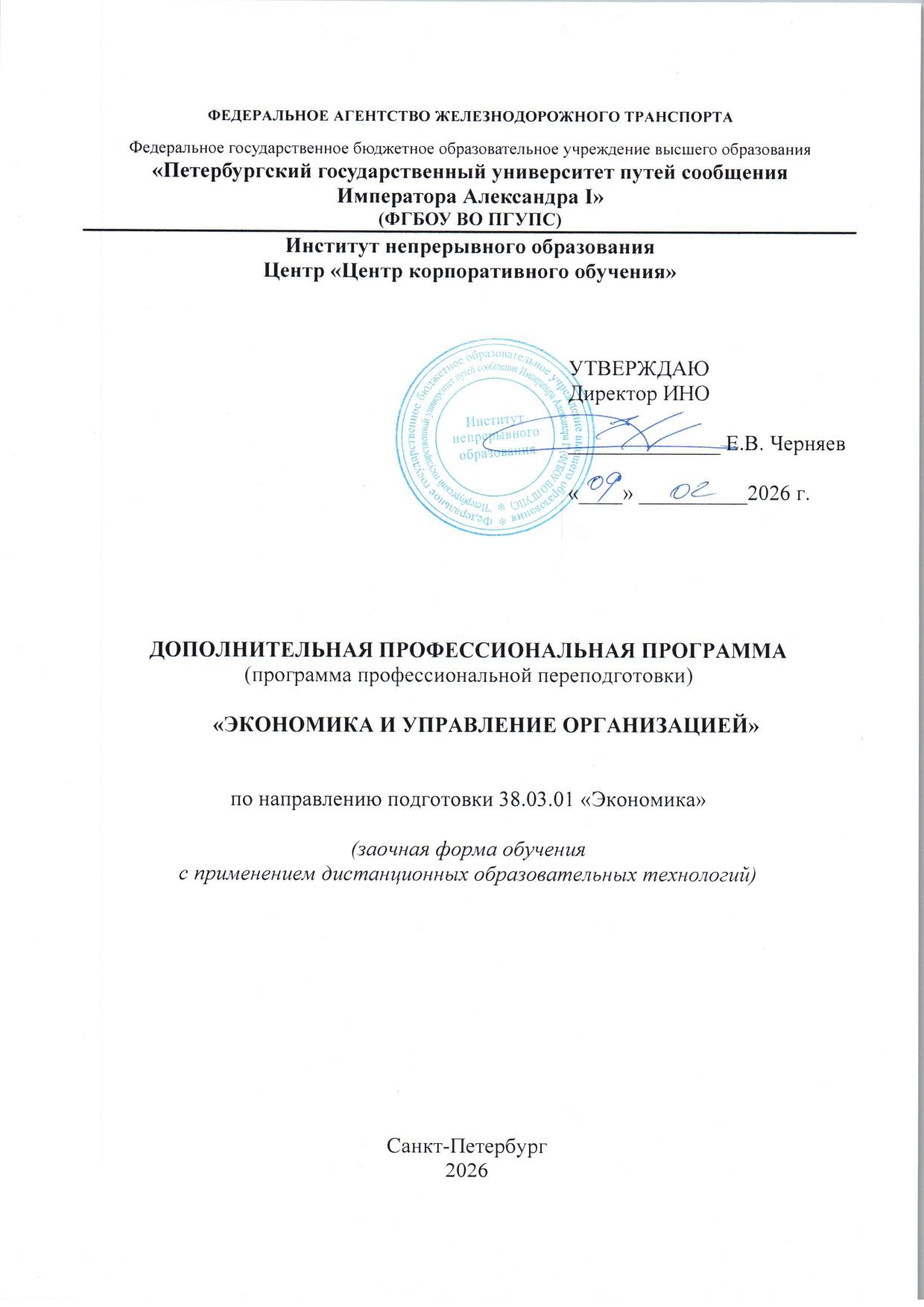 Экономика и управление организацией : программа профессиональной переподготовки / . — Санкт-Петербург : ПГУПС, 2026. — 134 с. — Текст : электронный // УМЦ ЖДТ : электронная библиотека. — URL: https://umczdt.ru/books/1283/299910/ (дата обращения 06.03.2026). — Режим доступа: по подписке.