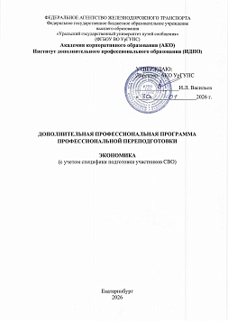 Экономика : программа профессиональной переподготовки / . — Екатеринбург : УрГУПС, 2026. — 46 с. — Текст : электронный // УМЦ ЖДТ : электронная библиотека. — URL: https://umczdt.ru/books/1306/299879/ (дата обращения 15.04.2026). — Режим доступа: по подписке.