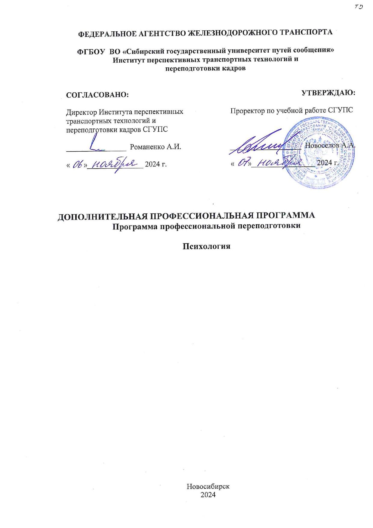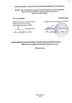 Психология : программа профессиональной переподготовки / . — Новосибирск : СГУПС, 2024. — 6 с. — Текст : электронный // УМЦ ЖДТ : электронная библиотека. — URL: https://umczdt.ru/books/1308/299913/ (дата обращения 17.04.2026). — Режим доступа: по подписке.
