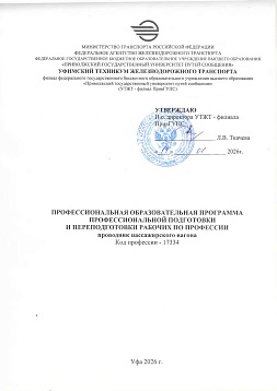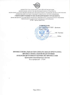 Проводник пассажирского вагона : программа профессиональной подготовки / . — Уфа : УТЖТ - филиал ПривГУПС, 2026. — 67 с. — Текст : электронный // УМЦ ЖДТ : электронная библиотека. — URL: https://umczdt.ru/books/1311/299799/ (дата обращения 12.03.2026). — Режим доступа: по подписке.