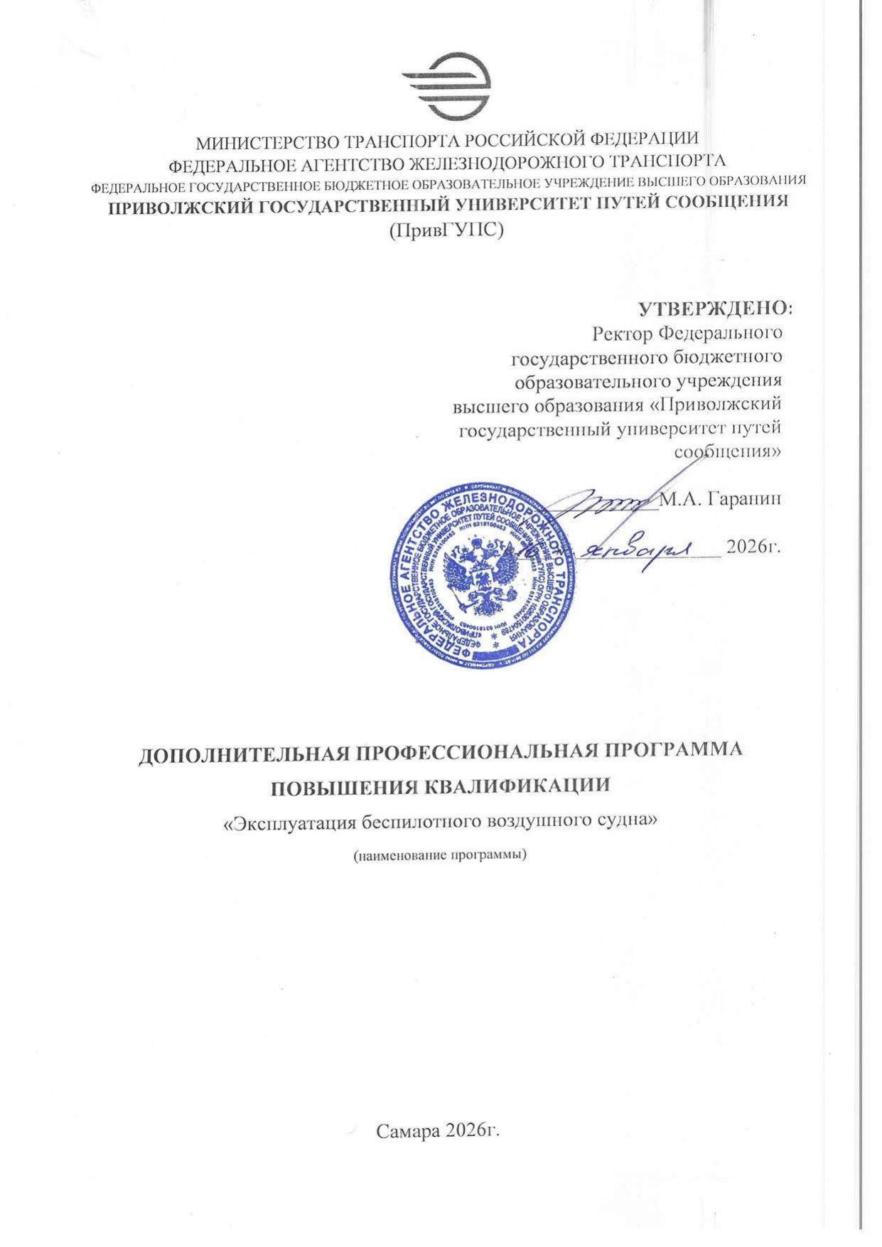 Эксплуатация беспилотного воздушного судна : программа повышения квалификации / . — Самара : ПривГУПС, 2026. — 22 с. — Текст : электронный // УМЦ ЖДТ : электронная библиотека. — URL: https://umczdt.ru/books/1311/299805/ (дата обращения 12.03.2026). — Режим доступа: по подписке.