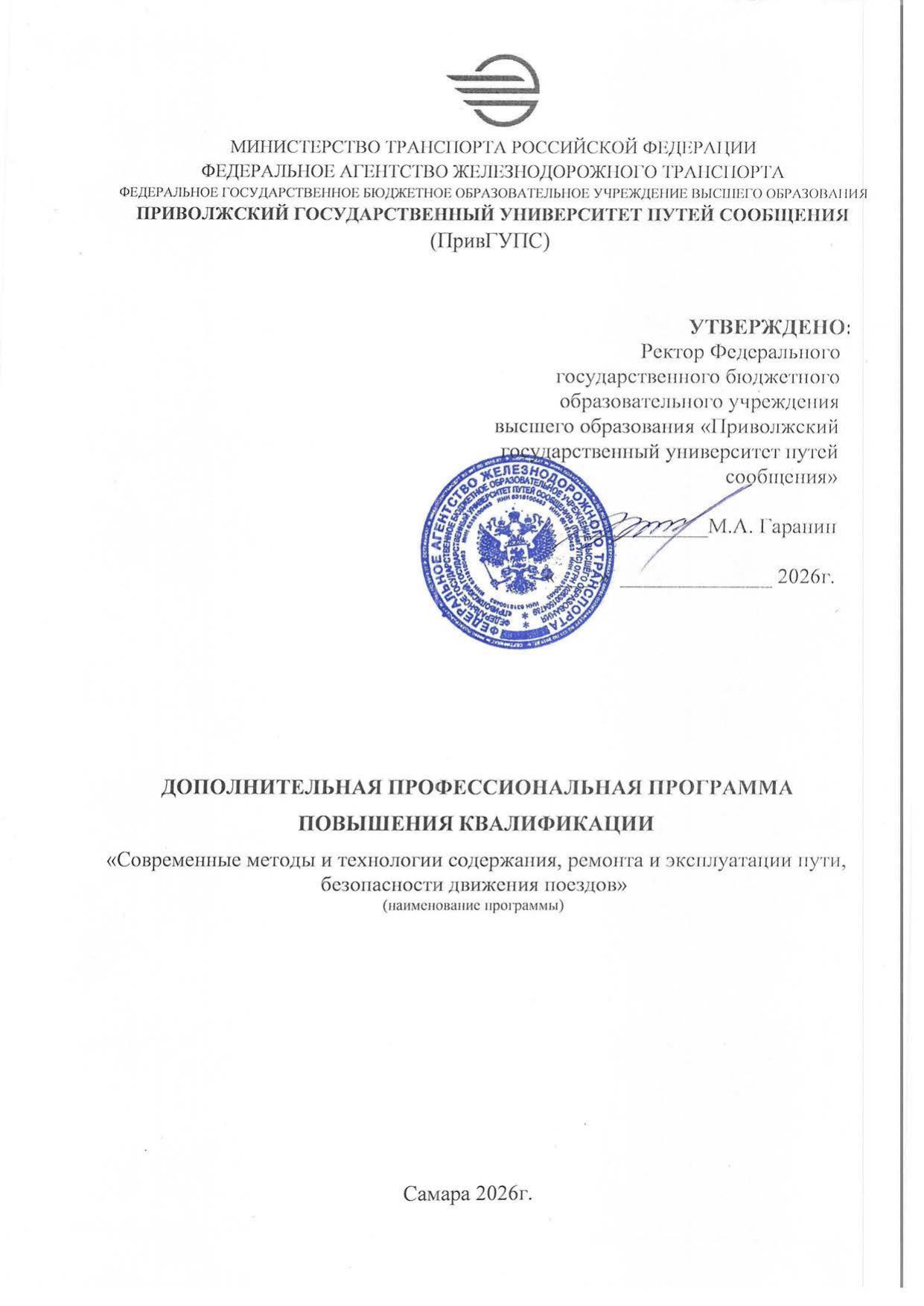 Современные методы и технологии содержания, ремонта и эксплуатации пути, безопасности движения поездов : программа повышения квалификации / . — Самара : ПривГУПС, 2026. — 16 с. — Текст : электронный // УМЦ ЖДТ : электронная библиотека. — URL: https://umczdt.ru/books/1311/299806/ (дата обращения 12.03.2026). — Режим доступа: по подписке.