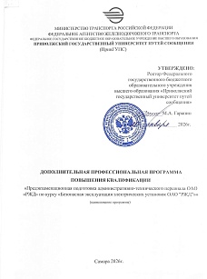 Предэкзаменационная подготовка административно-технического персонала ОАО "РЖД" по курсу " Безопасная эксплуатация электрических установок ОАО "РЖД" : программа повышения квалификации / . — Самара : ПривГУПС, 2026. — 40 с. — Текст : электронный // УМЦ ЖДТ : электронная библиотека. — URL: https://umczdt.ru/books/1311/299810/ (дата обращения 12.03.2026). — Режим доступа: по подписке.