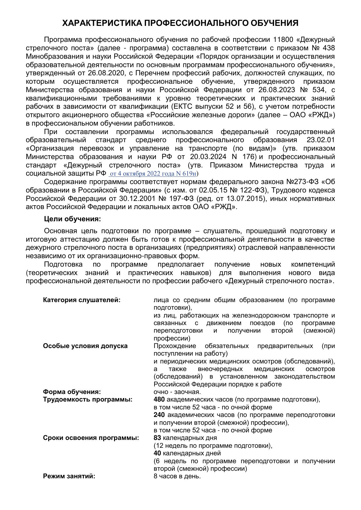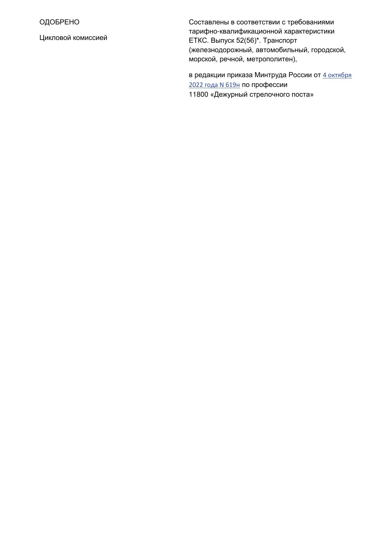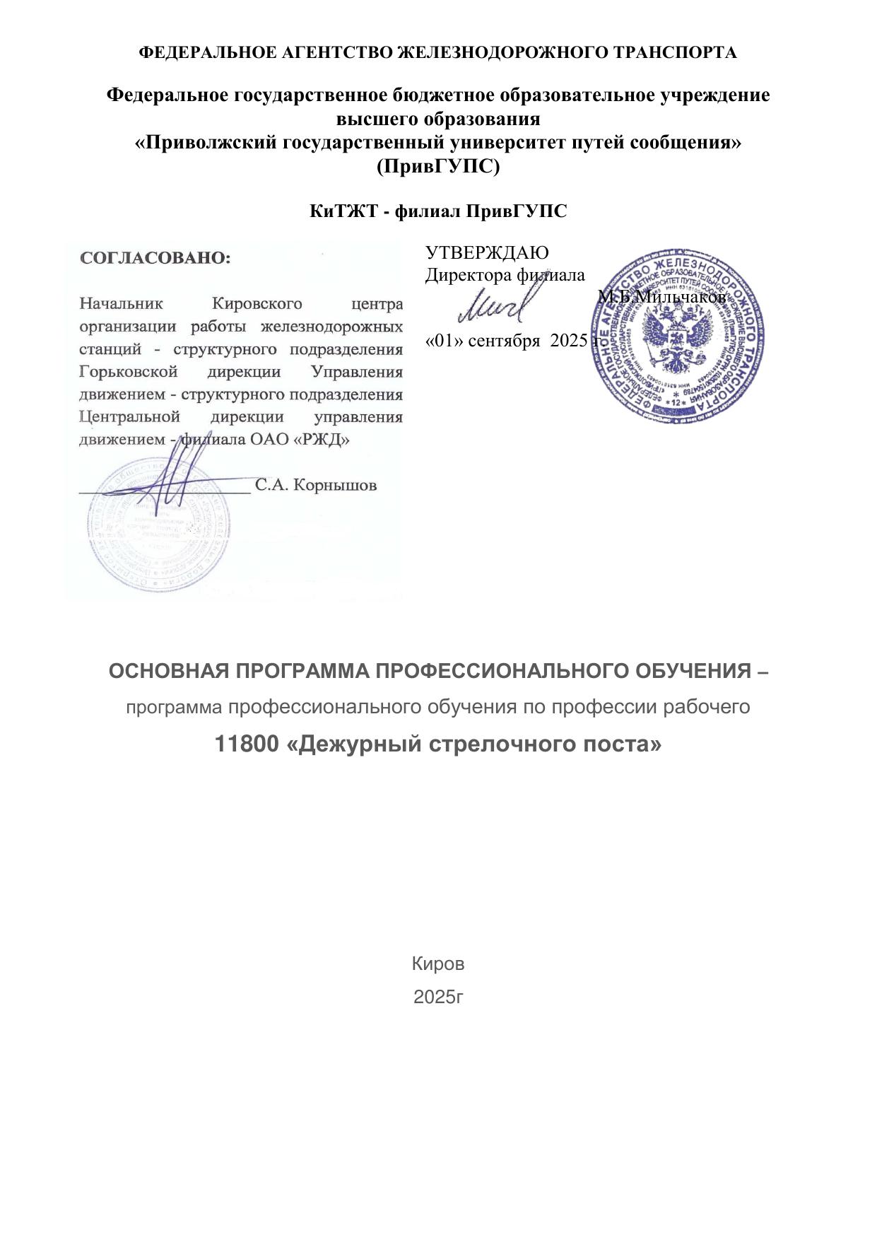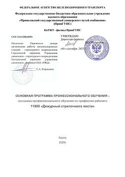 Дежурный стрелочного поста : программа профессиональной подготовки / . — Киров : КиТЖТ - филиал ПривГУПС, 2025. — 77 с. — Текст : электронный // УМЦ ЖДТ : электронная библиотека. — URL: https://umczdt.ru/books/1311/299848/ (дата обращения 16.04.2026). — Режим доступа: по подписке.