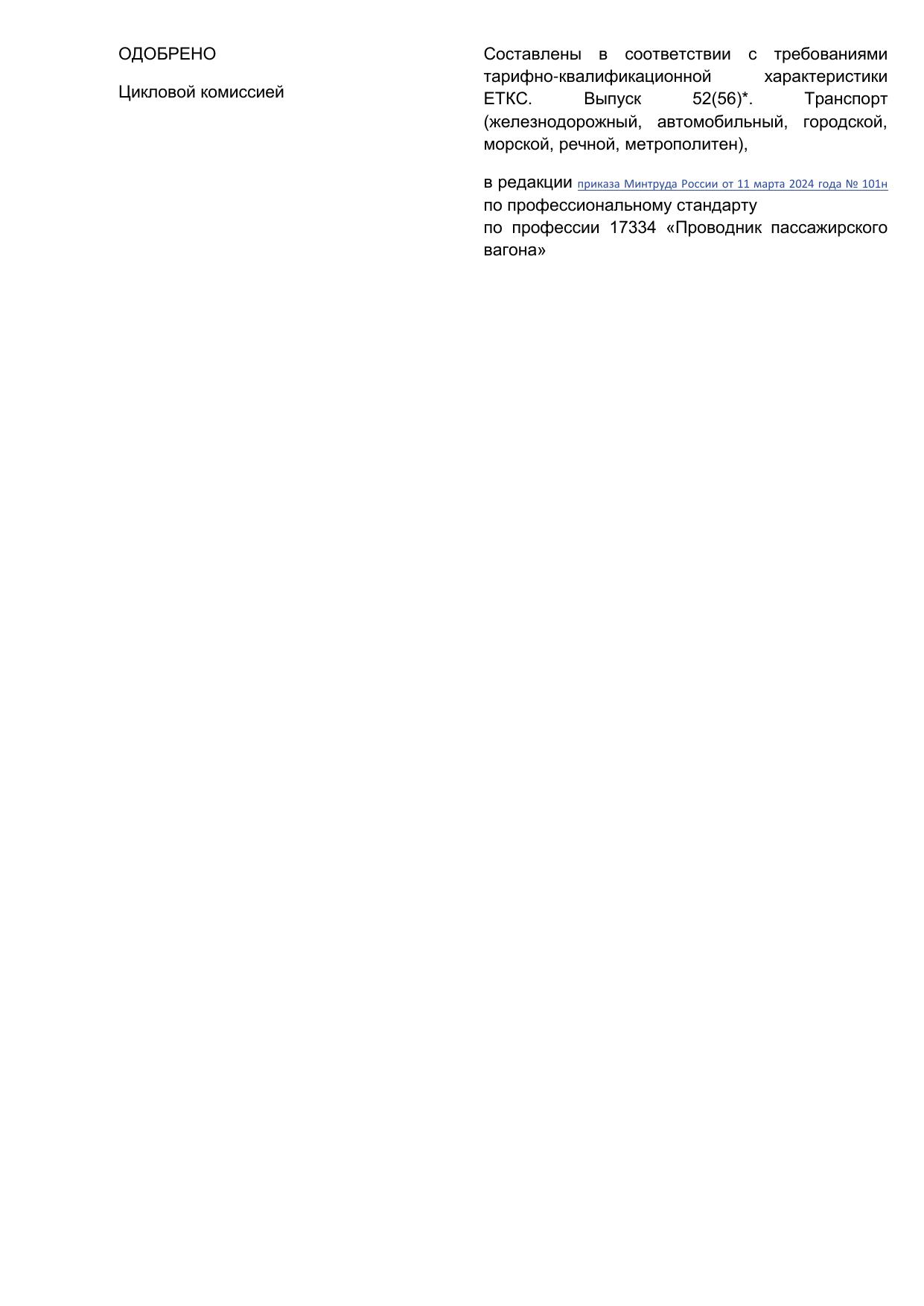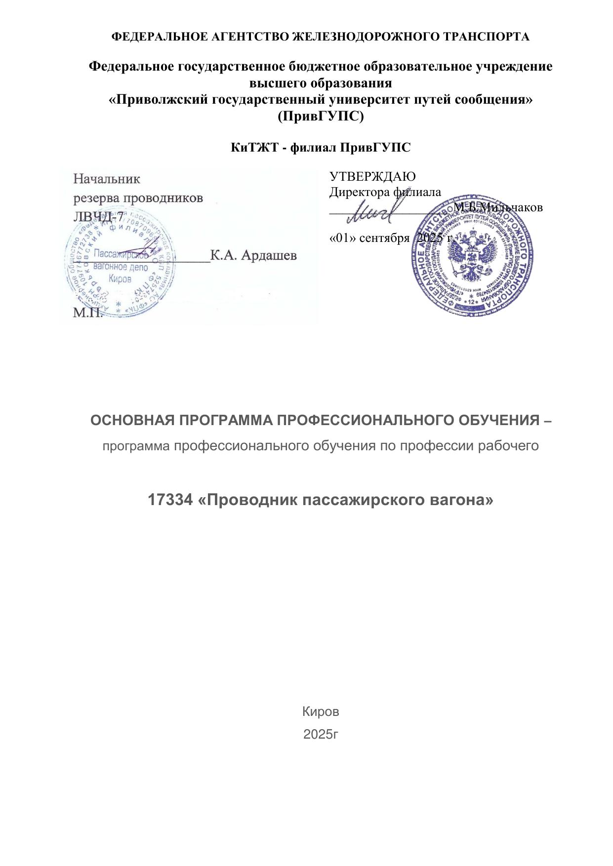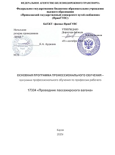 Проводник пассажирского вагона : программа профессиональной подготовки / . — Киров : КиТЖТ - филиал ПривГУПС, 2025. — 143 с. — Текст : электронный // УМЦ ЖДТ : электронная библиотека. — URL: https://umczdt.ru/books/1311/299854/ (дата обращения 16.04.2026). — Режим доступа: по подписке.