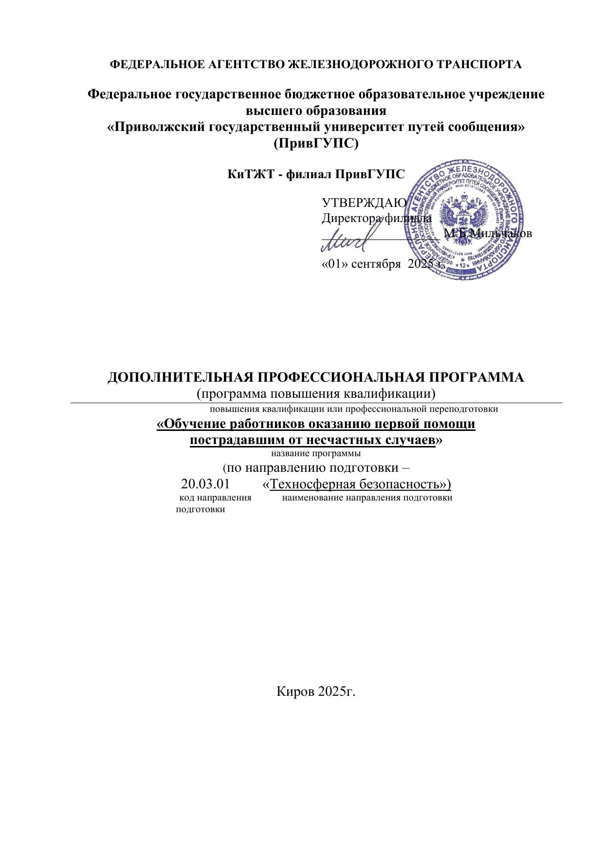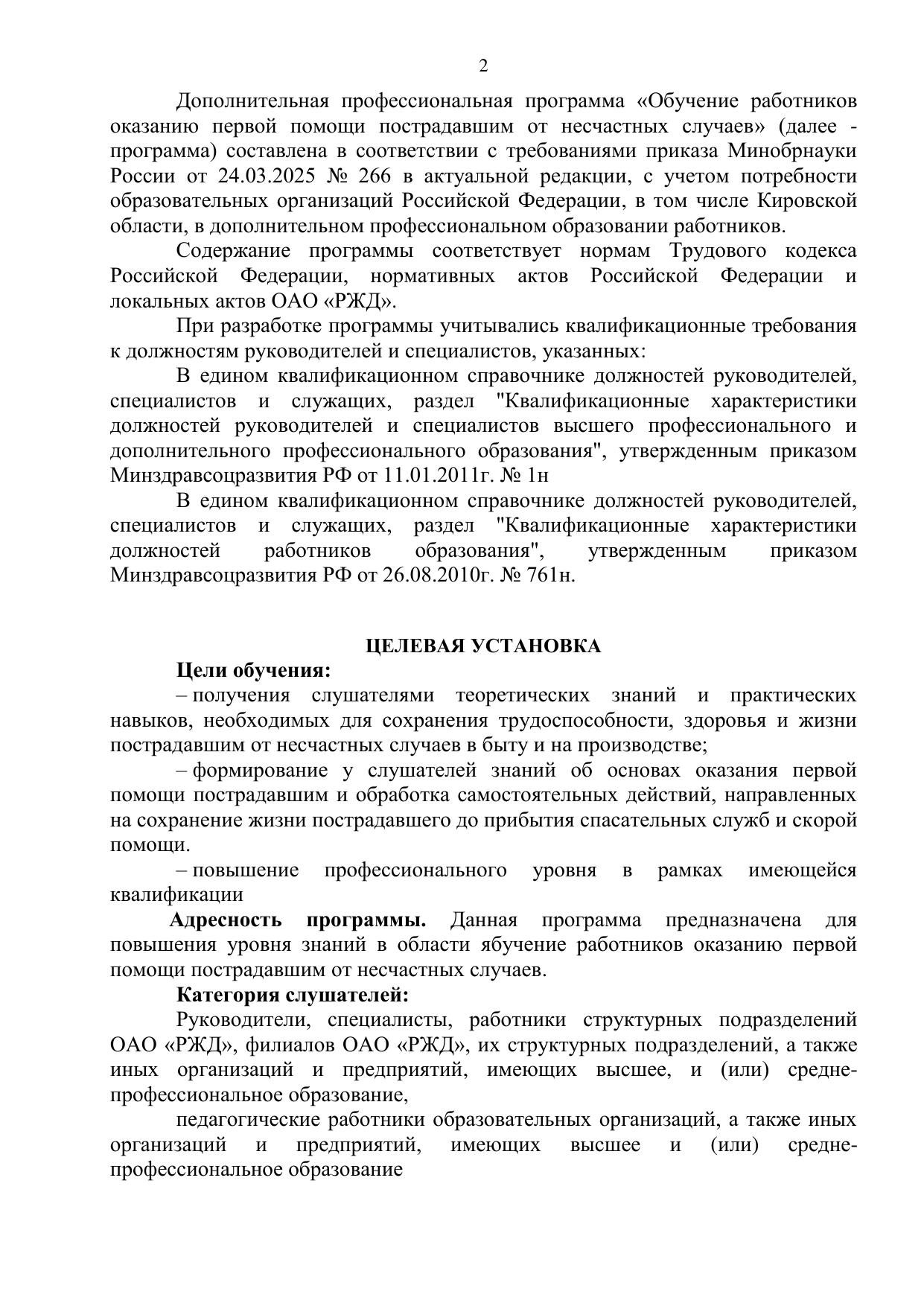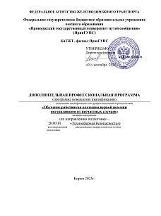 Обучение работников оказанию первой помощи пострадавшим от несчастных случаев : программа повышения квалификации / . — Киров : КиТЖТ - филиал ПривГУПС, 2025. — 31 с. — Текст : электронный // УМЦ ЖДТ : электронная библиотека. — URL: https://umczdt.ru/books/1311/299856/ (дата обращения 16.04.2026). — Режим доступа: по подписке.
