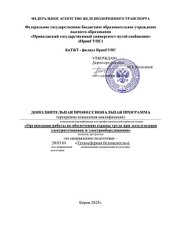 Организация работы по обеспечению охраны труда при эксплуатации электроустановок и электрооборудования : программа повышения квалификации / . — Киров : КиТЖТ - филиал ПривГУПС, 2025. — 45 с. — Текст : электронный // УМЦ ЖДТ : электронная библиотека. — URL: https://umczdt.ru/books/1311/299860/ (дата обращения 16.04.2026). — Режим доступа: по подписке.