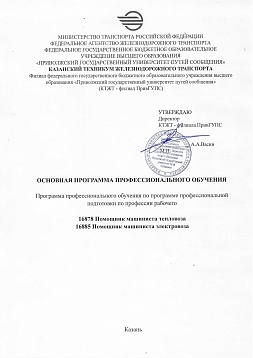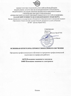 Помощник машиниста тепловоза, электровоза : программа профессиональной подготовки / . — Казань : КТЖТ- филиал ПривГУПС, 2025. — 27 с. — Текст : электронный // УМЦ ЖДТ : электронная библиотека. — URL: https://umczdt.ru/books/1311/299867/ (дата обращения 16.04.2026). — Режим доступа: по подписке.
