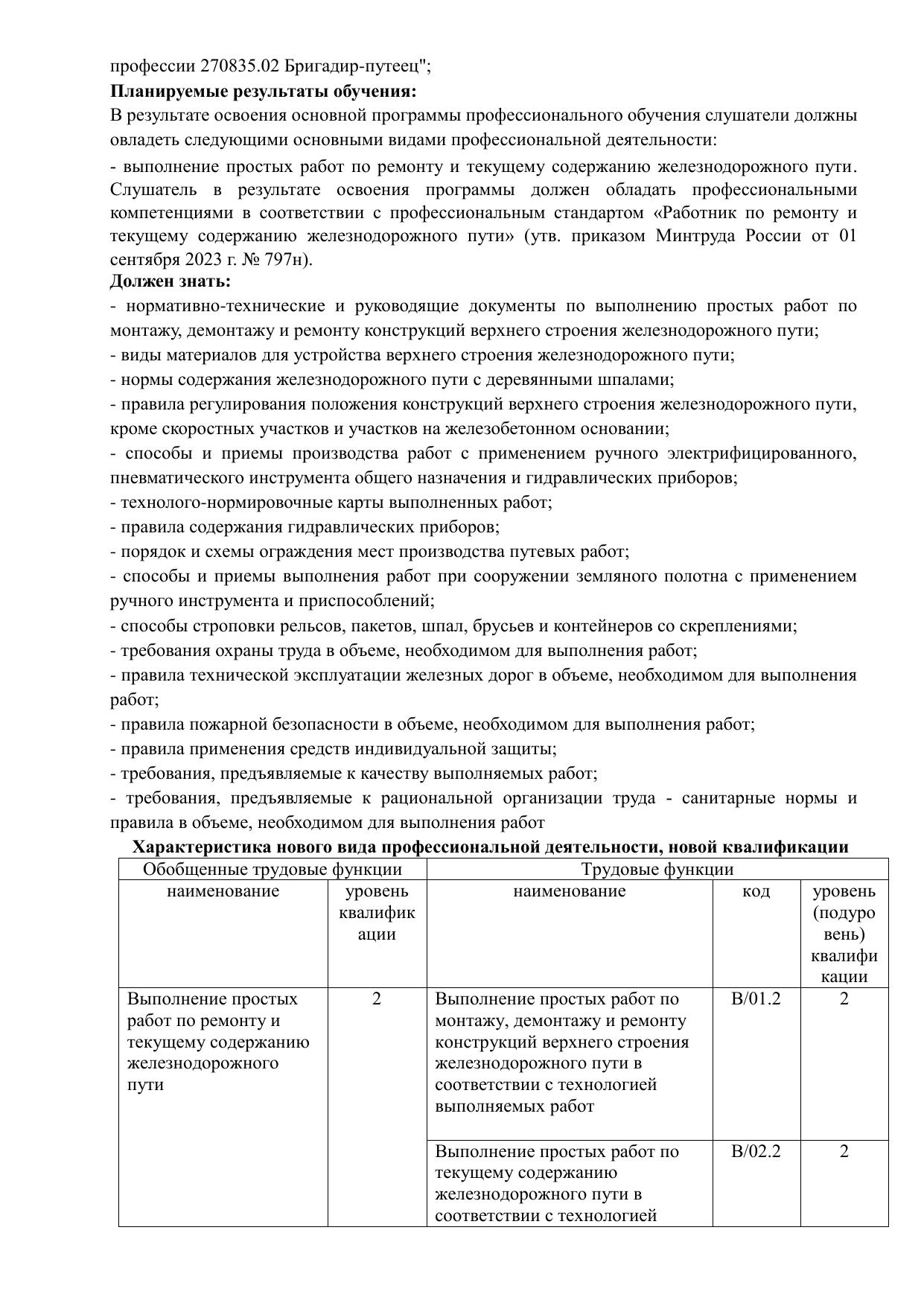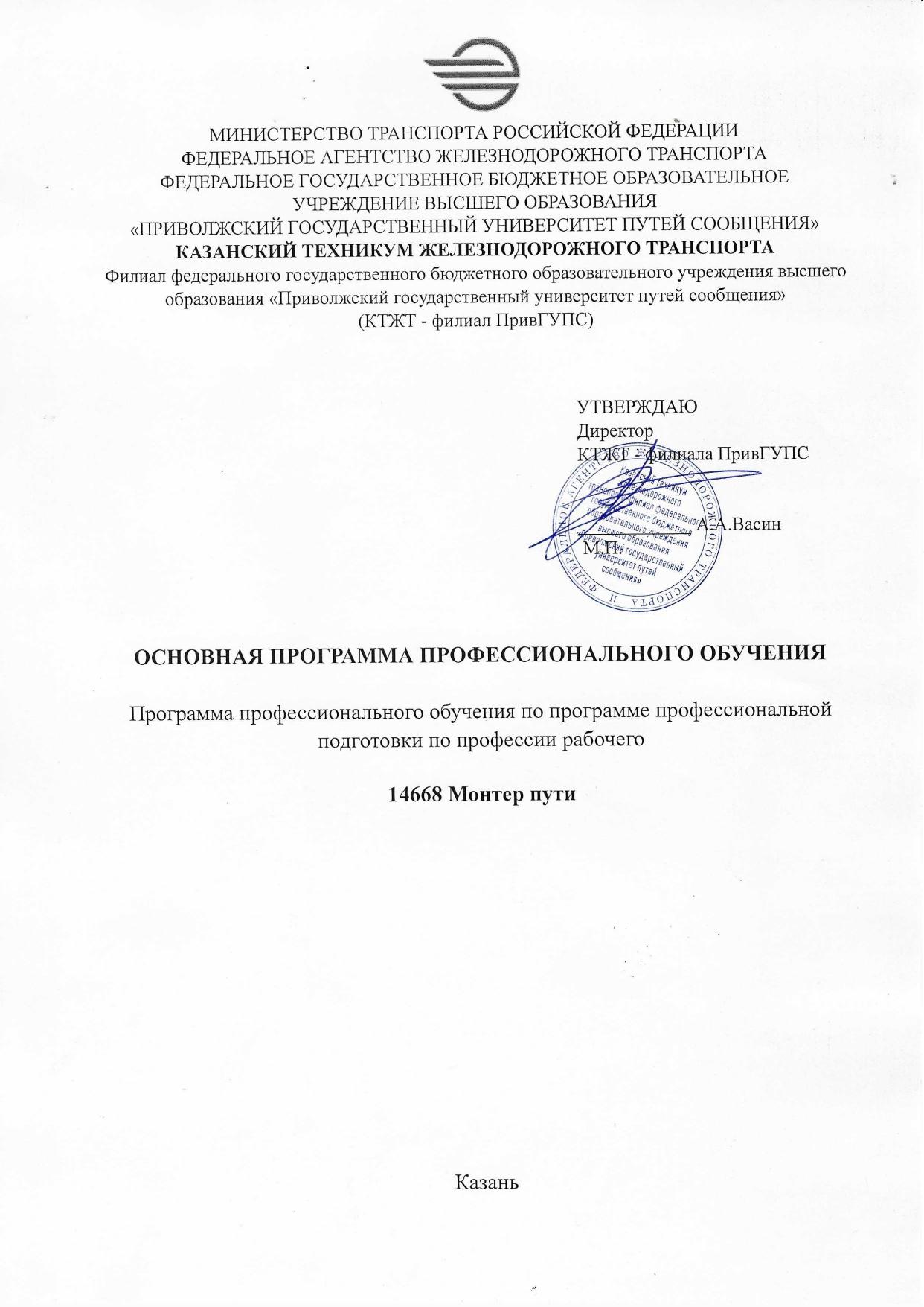 Монтер пути : программа профессиональной подготовки / . — Казань : КТЖТ- филиал ПривГУПС, 2025. — 24 с. — Текст : электронный // УМЦ ЖДТ : электронная библиотека. — URL: https://umczdt.ru/books/1311/299868/ (дата обращения 18.04.2026). — Режим доступа: по подписке.