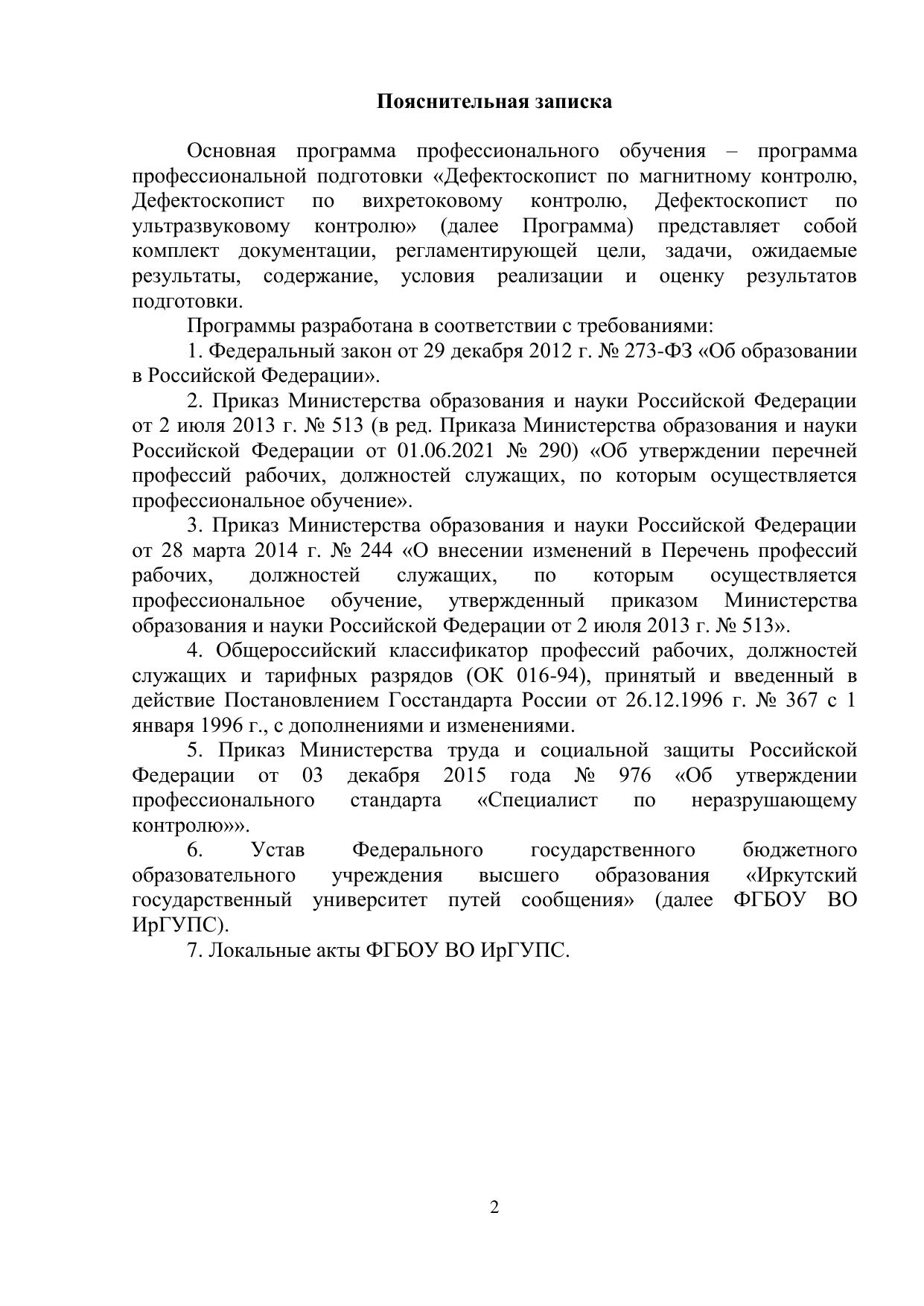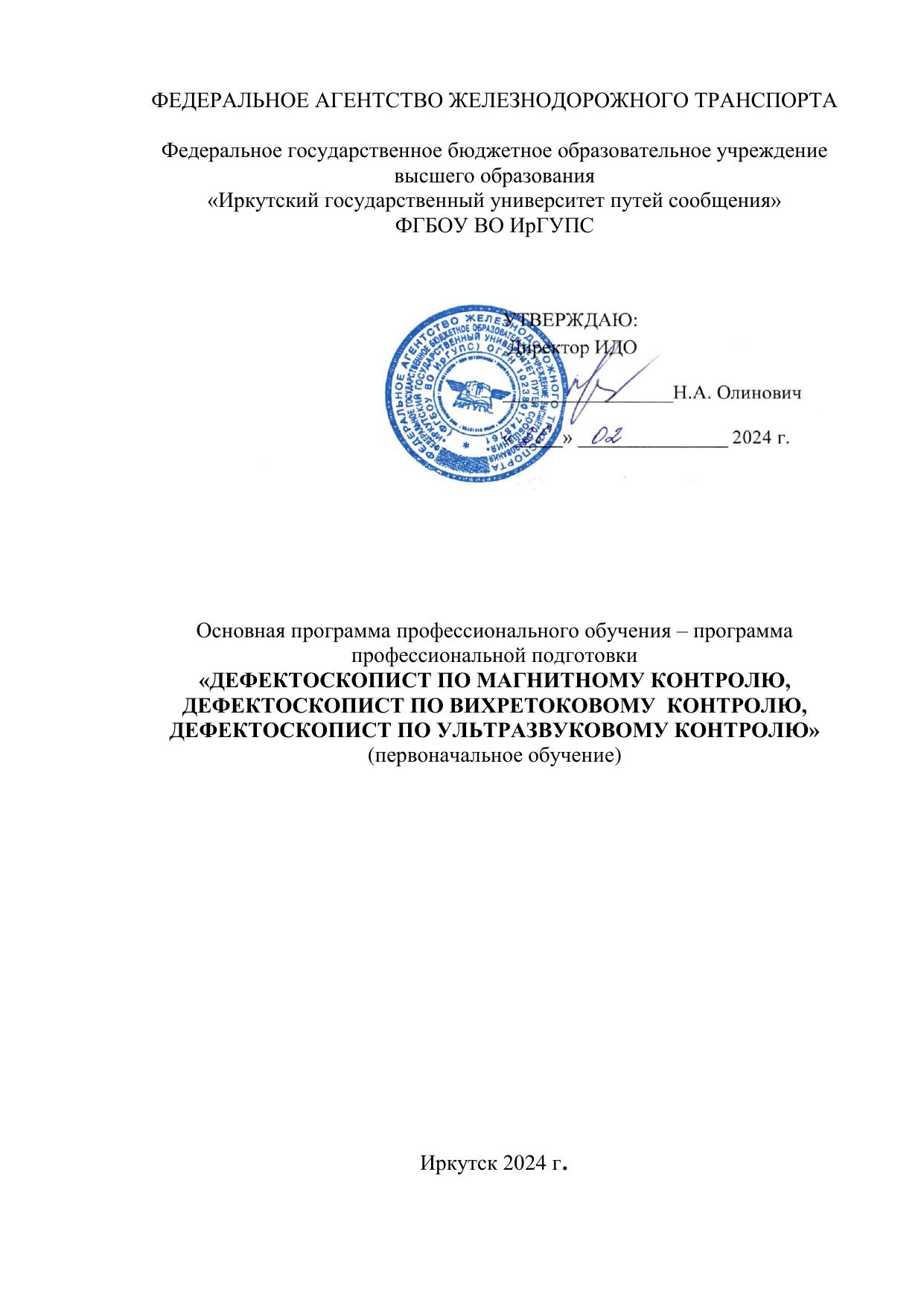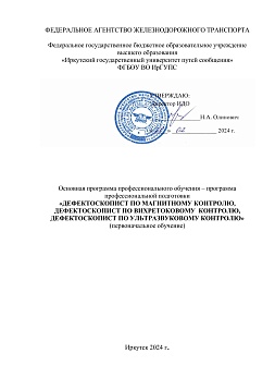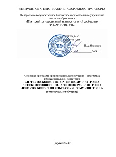 Дефектоскопист по магнитному, вихревому, ультразвуковому контролю : программа профессиональной подготовки / . — Иркутск : ИрГУПС, 2024. — 17 с. — Текст : электронный // УМЦ ЖДТ : электронная библиотека. — URL: https://umczdt.ru/books/1319/299671/ (дата обращения 17.04.2026). — Режим доступа: по подписке.