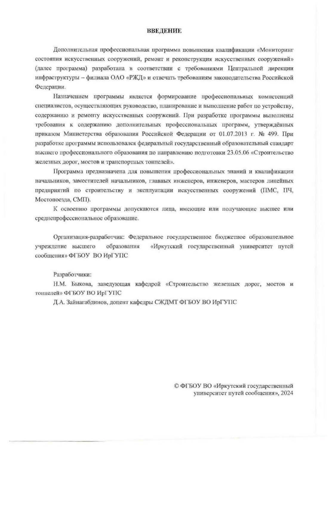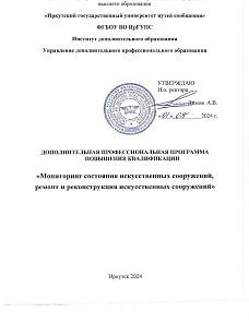 Мониторинг состояния искусственных сооружений, ремонт и реконструкция искусственных сооружений : программа повышения квалификации / . — Иркутск : ИрГУПС, 2024. — 21 с. — Текст : электронный // УМЦ ЖДТ : электронная библиотека. — URL: https://umczdt.ru/books/1319/299675/ (дата обращения 12.03.2026). — Режим доступа: по подписке.