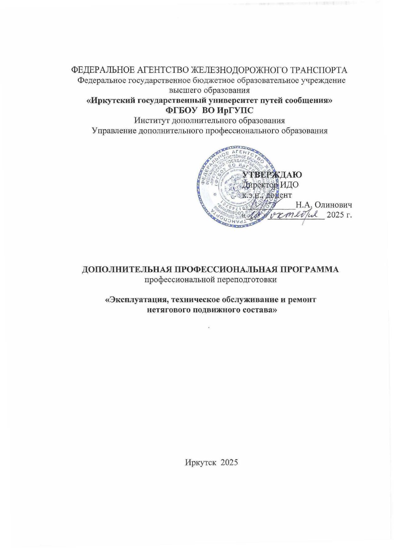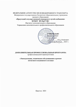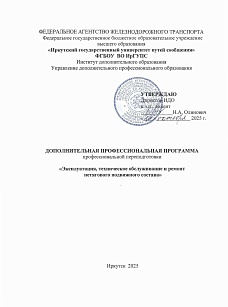 Эксплуатация, техническое обслуживание и ремонт нетягового подвижного состава : программа профессиональной переподготовки / . — Иркутск : ИрГУПС, 2025. — 24 с. — Текст : электронный // УМЦ ЖДТ : электронная библиотека. — URL: https://umczdt.ru/books/1319/299695/ (дата обращения 17.04.2026). — Режим доступа: по подписке.
