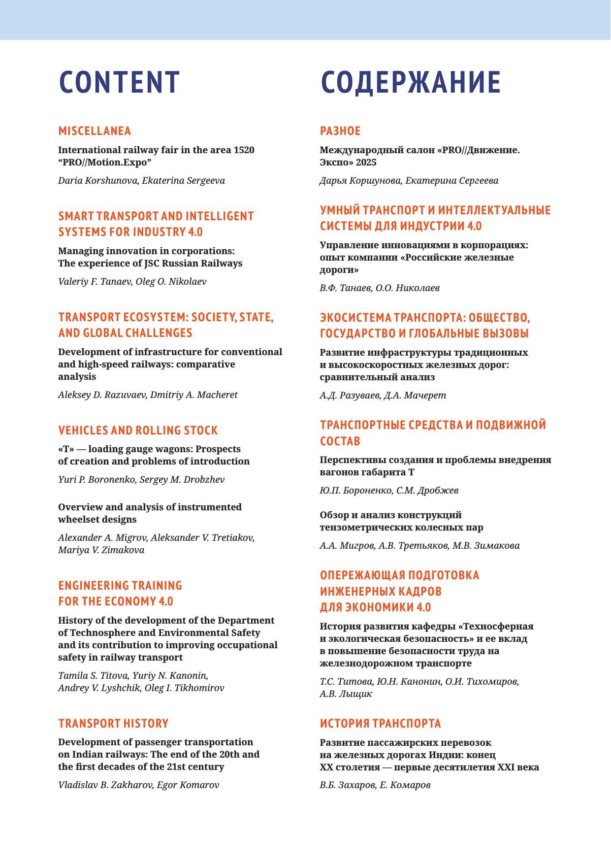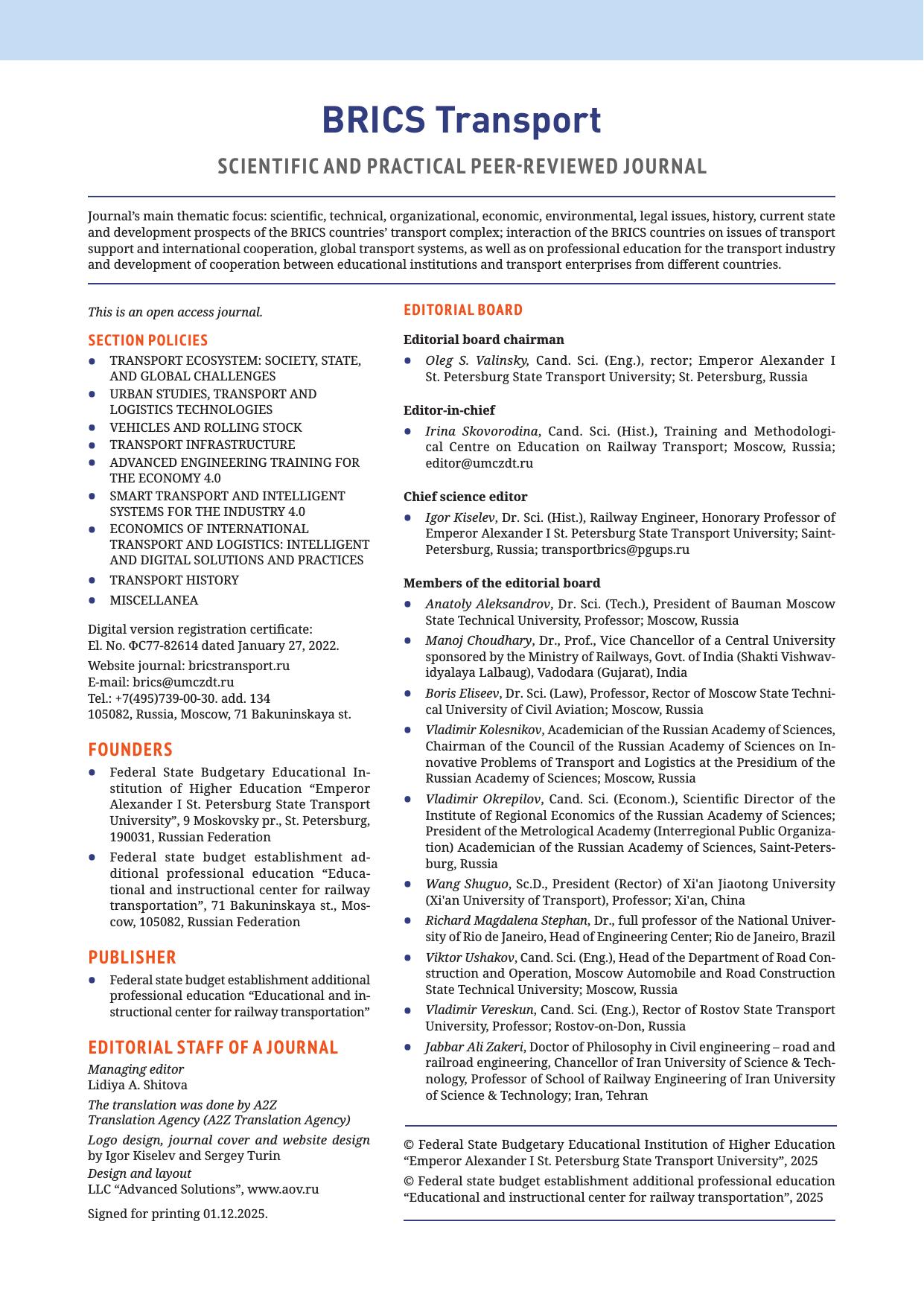 Научно-практический рецензируемый журнал о научно-технических, организационных, экономических, экологических, правовых проблемах, истории, состоянии и перспективах развития транспортного комплекса стран БРИКС.