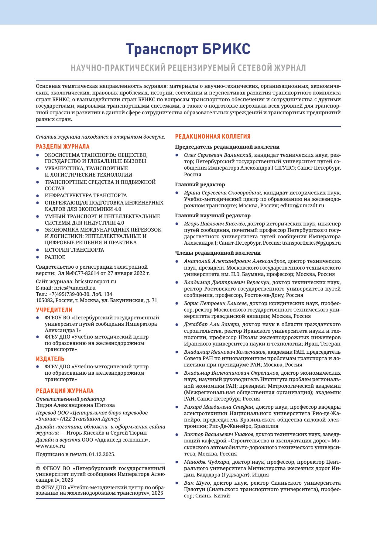 Транспорт БРИКС. 2025. Том 4. Выпуск 4