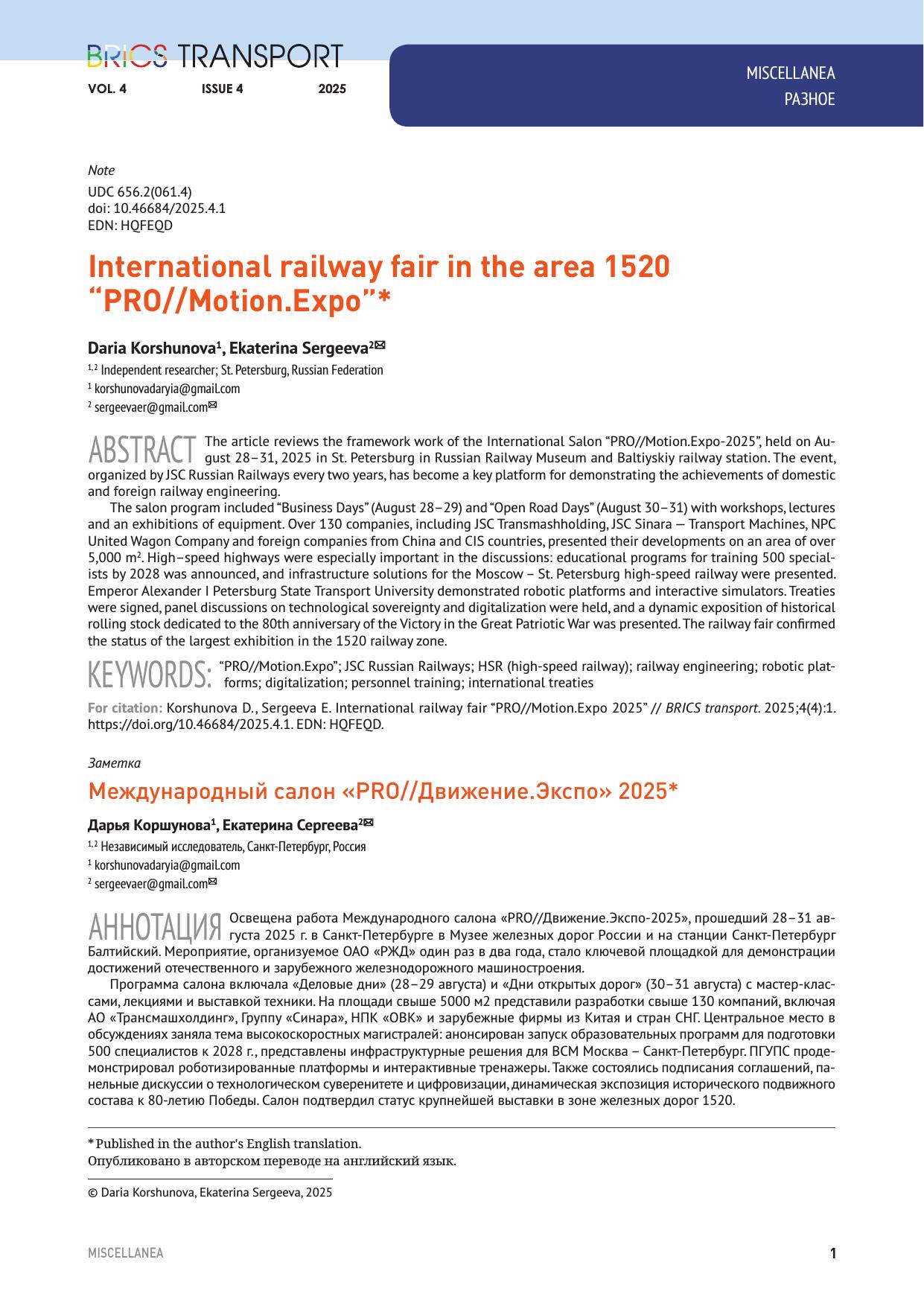 Транспорт БРИКС. 2025. Том 4. Выпуск 4 : журнал / . — Москва : УМЦ ЖДТ, 2025. — 71 с. — Текст : электронный // УМЦ ЖДТ : электронная библиотека. — URL: https://umczdt.ru/books/1367/299010/ (дата обращения 13.01.2026). — Режим доступа: по подписке.