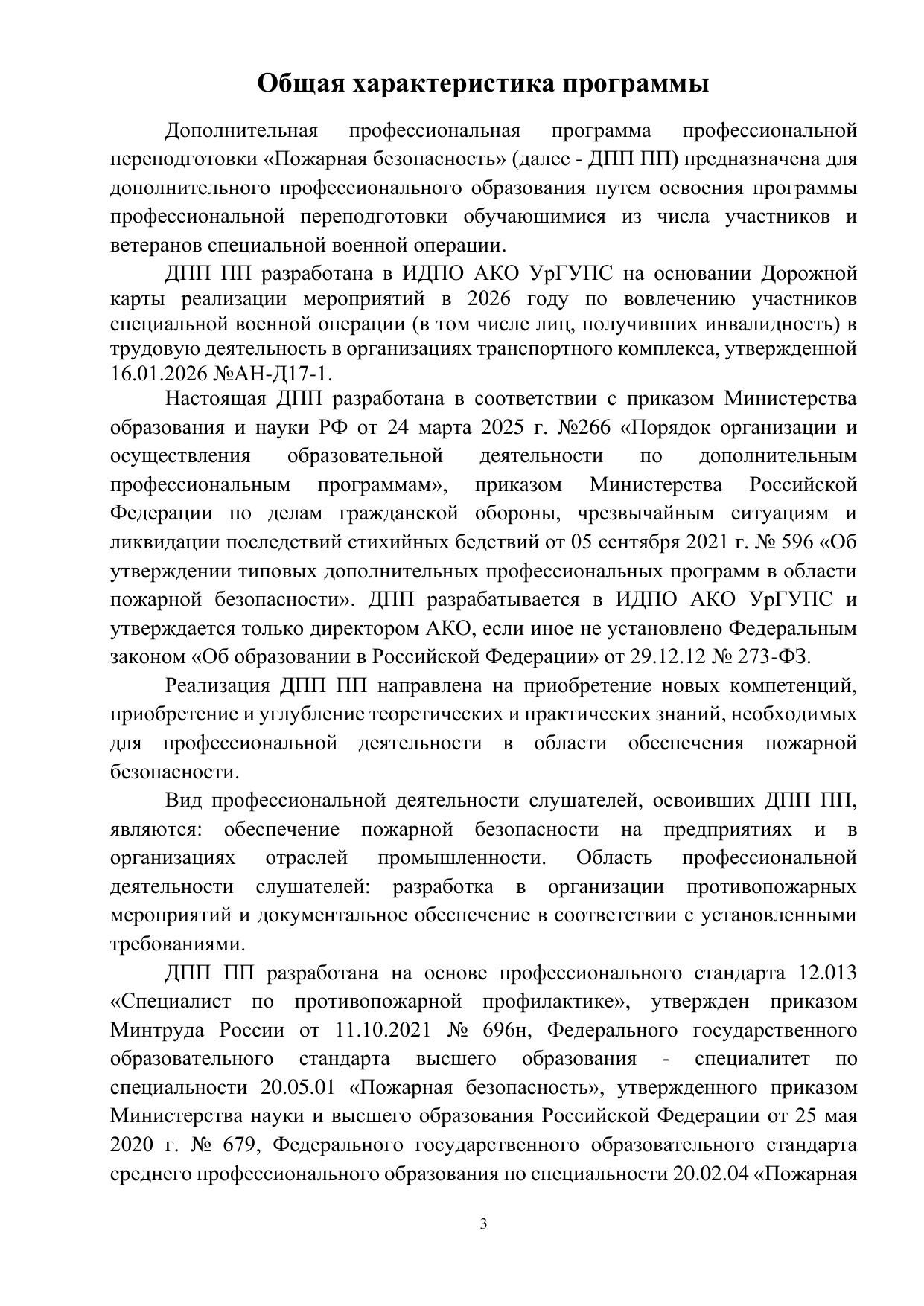 Пожарная безопасность : программа профессиональной переподготовки / . — Екатеринбург : УрГУПС, 2026. — 51 с. — Текст : электронный // УМЦ ЖДТ : электронная библиотека. — URL: https://umczdt.ru/books/1306/299883/ (дата обращения 17.04.2026). — Режим доступа: по подписке.