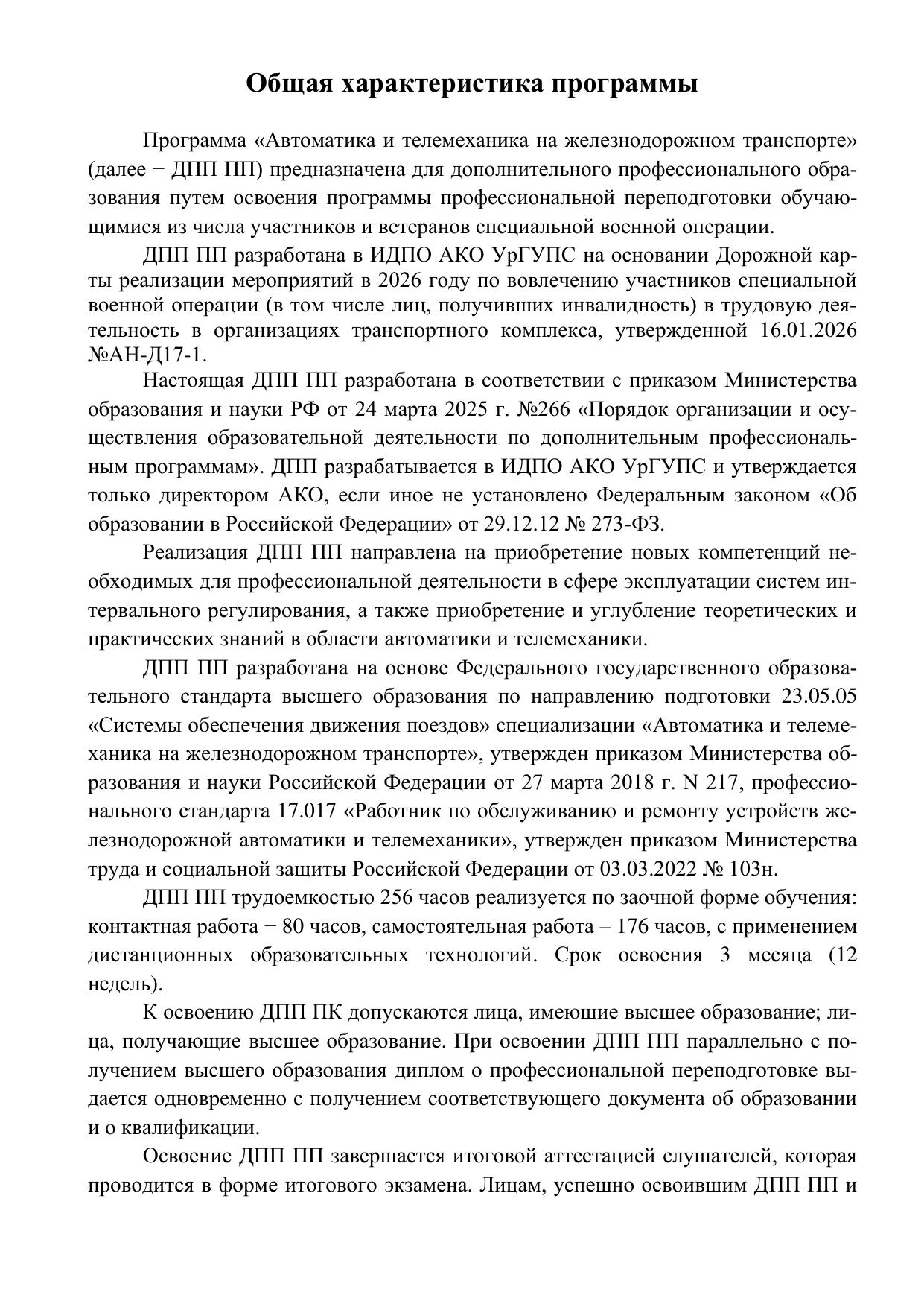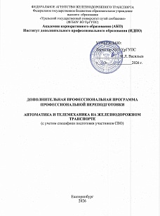 Автоматика и телемеханика на железнодорожном транспорте : программа профессиональной переподготовки / . — Екатеринбург : УрГУПС, 2026. — 56 с. — Текст : электронный // УМЦ ЖДТ : электронная библиотека. — URL: https://umczdt.ru/books/1306/299886/ (дата обращения 17.04.2026). — Режим доступа: по подписке.