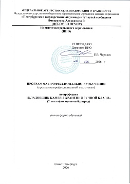 Кладовщик камеры хранения ручной клади : программа профессиональной подготовки / . — Санкт-Петербург : ПГУПС, 2026. — 13 с. — Текст : электронный // УМЦ ЖДТ : электронная библиотека. — URL: https://umczdt.ru/books/1283/299904/ (дата обращения 16.04.2026). — Режим доступа: по подписке.